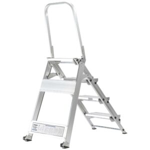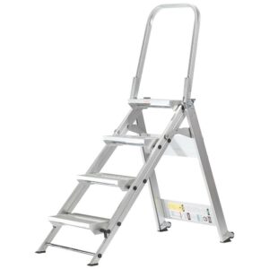 – 4-Step Ultra Duty Aluminum Folding Stool with Handrail ANSI Type IAA 375 lbs. Load Capacity
