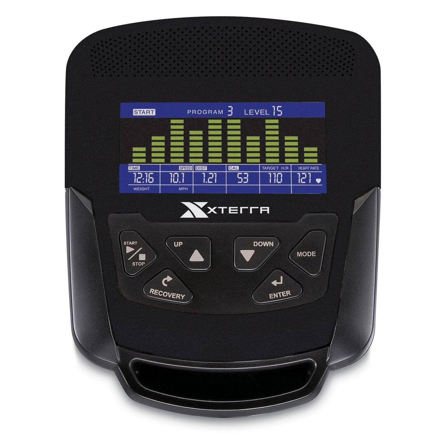 Enjoy the benefits of better health and fitness with the new, XTERRA FS2.5 dual-action elliptical. Whether you are looking to slim down or tone up, train more efficiently on the FS2.5. 24 levels of resistance along with 24 program options keep your workouts fresh and your body challenged. Listen to your favorite music or podcast by connecting your mp3 player or mobile phone through the audio jack and speakers in the console. The FS2.5 elliptical machine has an ergonomic 14-Inch stride length which provides a smooth, comfortable elliptical motion forward and reverses. The magnetic resistance system is friction-free for smooth, quiet, and maintenance-Free operation. When you finish with your workout, you can easily move the equipment out of the way with the transport wheels it comes with. The in-Home elliptical machine is built sturdy with a heavy-duty steel frame that comes with a metallic black powder-coated rust-proof finish.