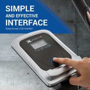 Comfort and convenience are at the core of the XTERRA Fitness UB120 Upright Bike. The solid yet compact frame design allows for easy accessibility. The multi-grip padded handles, an adjustable padded seat, and oversized adjustable pedals ensure a secure and comfortable ride. The small footprint maximizes your use of space while providing a low-impact, heart-healthy workout in the convenience of your home. With 8 levels of on-demand resistance, riders of all levels are sure to get a workout that is perfectly matched to their fitness level and desired intensity. The easy-to-read console displays your most important metrics, including heart rate which can be closely monitored while using the integrated hand pulse sensors.