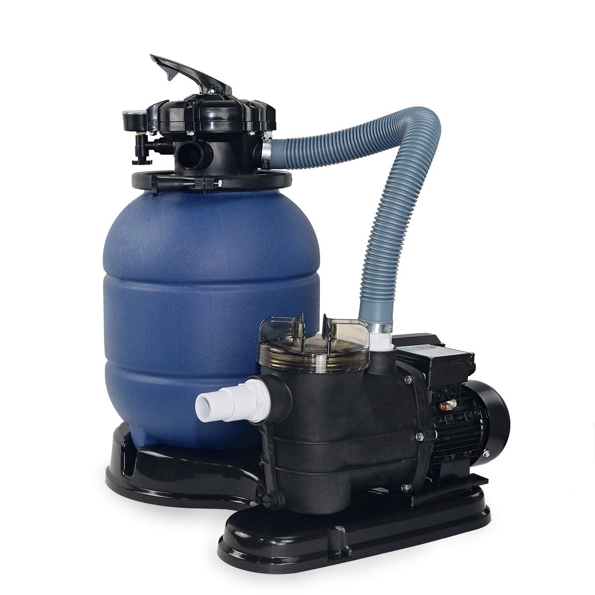XtremepowerUS 13″ Sand Filter Combo for above ground pools. Fully integrated sand filter, pump pressure valve, and stand. 2400 gallons per hour pumping capacity. 43 pounds per hour sand pumping capacity. Just add the filter media (sold separately) and hook up the hoses, plug it in and it starts filtering immediately. Never-rust, blow molded PE tank construction