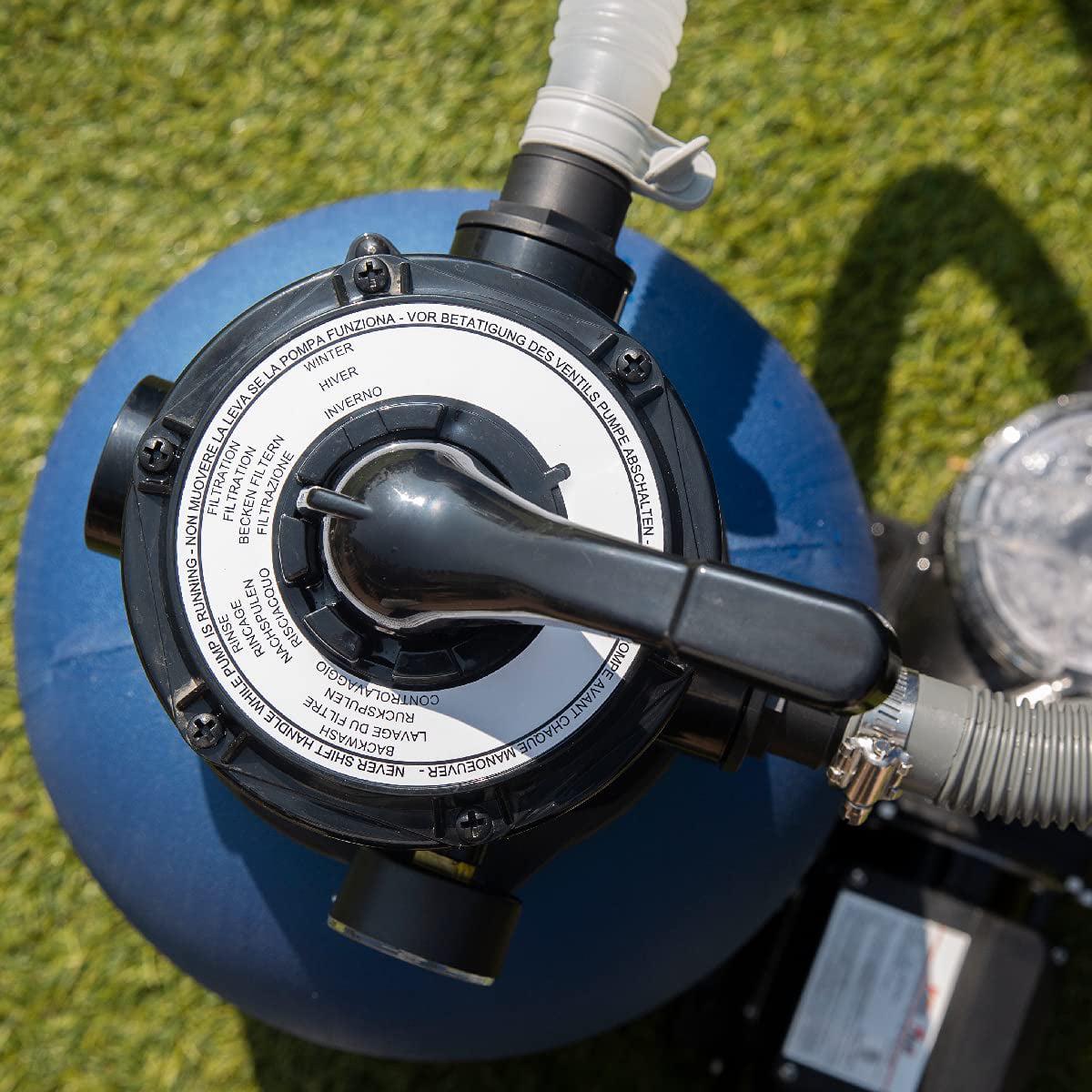 – Sizable Capacity – This sand filter pump is housed in a one-piece 13-inch tank with a capacity of 42 pounds of sand that can filter above ground pools up to 10,000 gallons