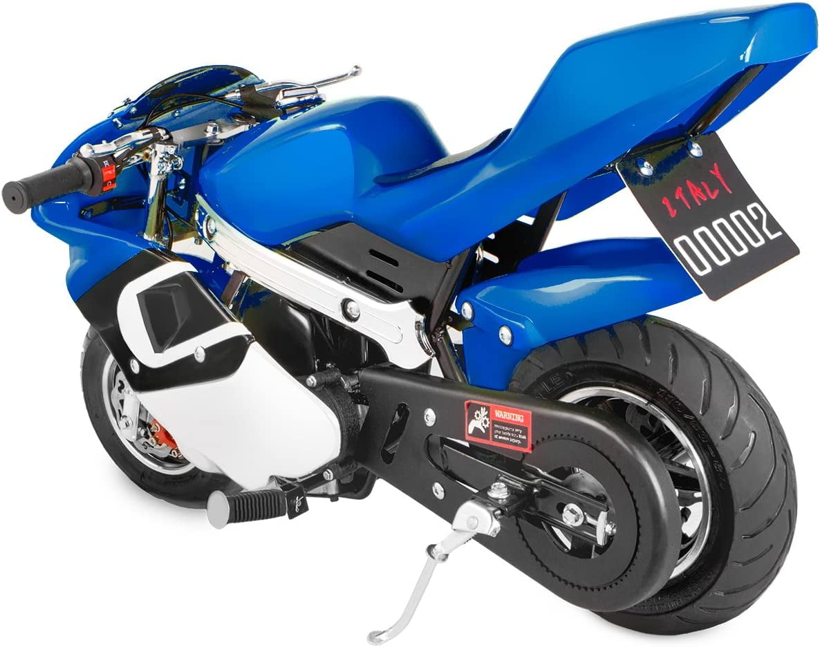 XtremepowerUS 40cc 4-Stroke Pocketbike, EPA Gas Motorbike for Kids, Dual Brake, Ride On Toy, Blue
