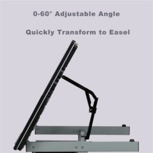 Looking for somewhere to unleash your creativity This drawing table is the perfect product. The height adjustable, tempered glass drafting table is guaranteed to help boost your productivity. The tilting surface table has ample space for you to work, and it is sturdy and durable to support long term use. The adjustable, tilting surface provides relief to your neck and back while allowing you to work on your projects at different angles. The pencil ledge keeps all your writing utensils from falling off if the tabletop is adjusted. The sleek, metal frame and glass tabletop blend in perfectly with any home decor style. This is the perfect piece for any arts and crafts area, den, living room, bedroom, home office, etc. Simple assembly is required and detailed instructions are included.