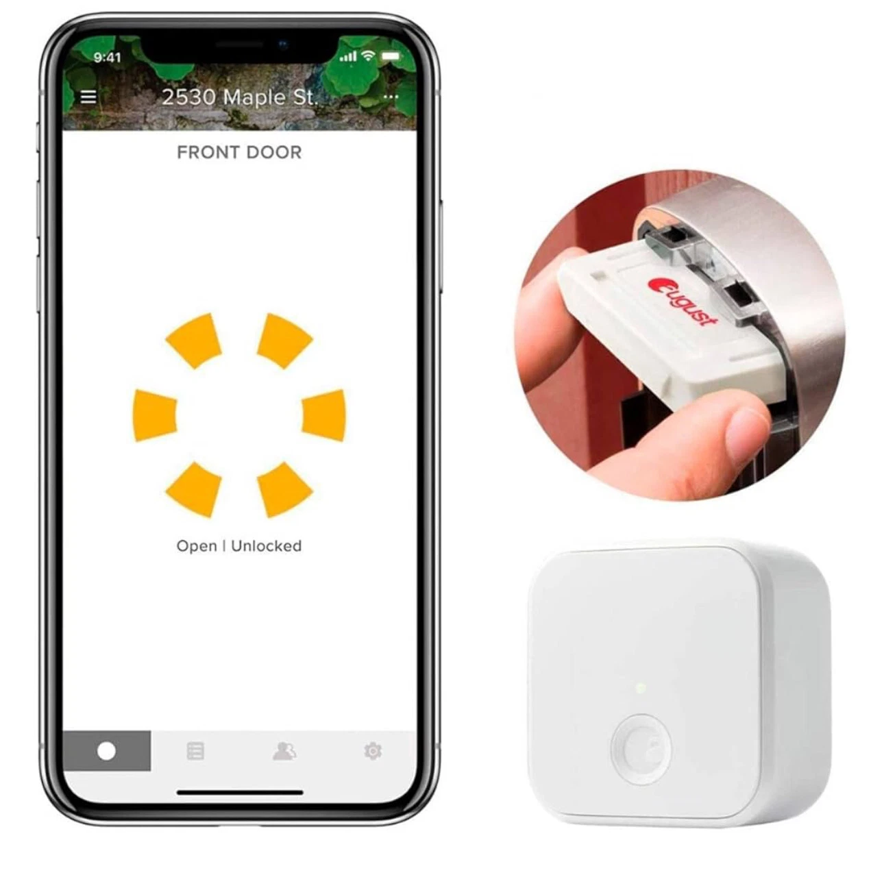 Upgrade your Assure Lock or Lever to work with the August app Lock, unlock, share acces and see who comes and goes from anywhere using the August app Your Assure Lock/Lever will automatically unlock as you get home and relock for you Works with Amazon Alexa, Google Assistant and Siri Includes DoorSense, a sensor that lets you know if your door is open or closed Upgrade your Assure Lock and setup the lock using your August app in minutes Comes with the August Connect Wi-Fi Bridge so there’s no additional hubs needed Backed by bank grade encryption