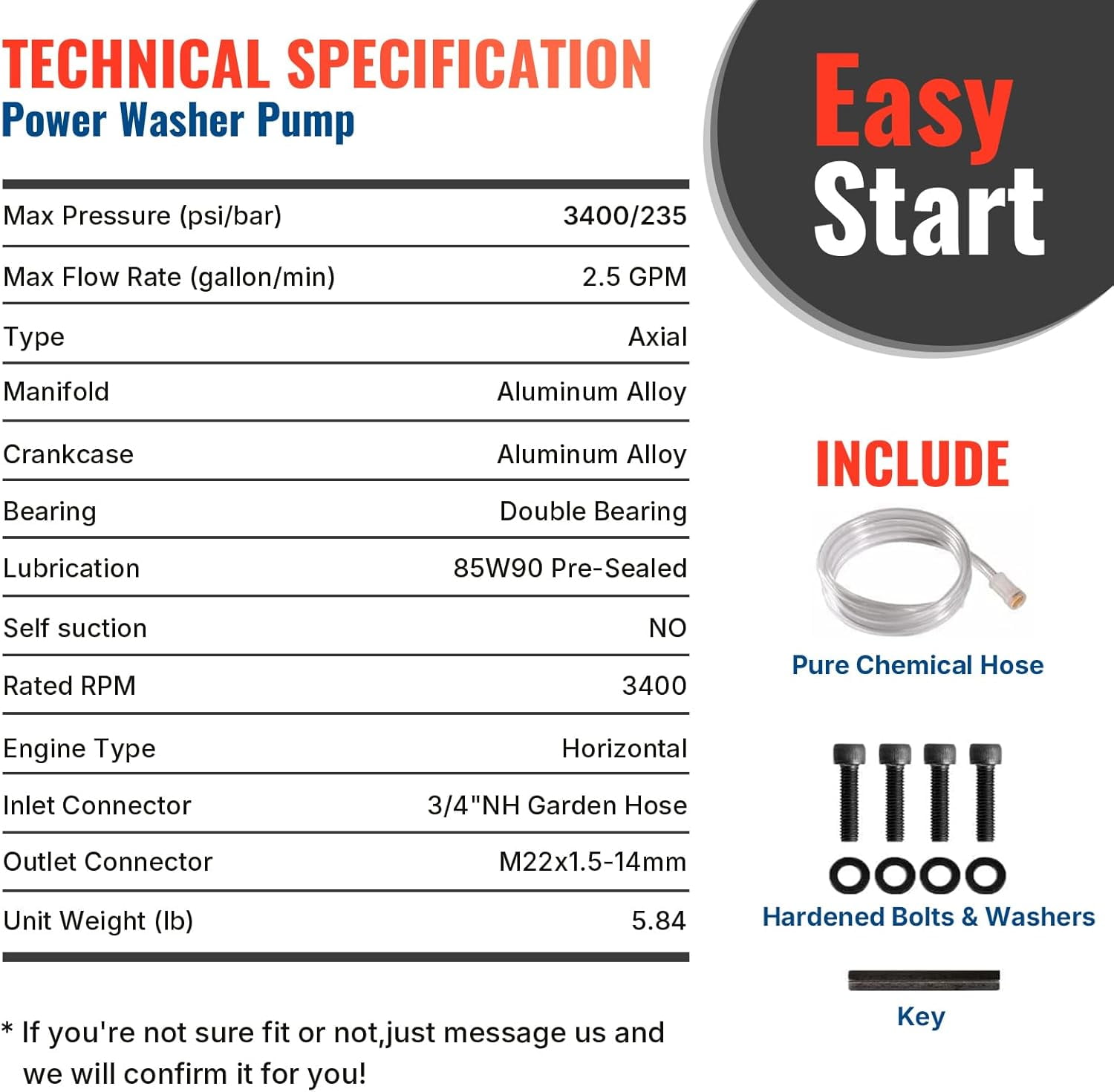 YAMATIC POWER YOUR WAY Quality products & Profession solutions for Pressure Washer Pump YAMATIC 3/4″ Shaft Horizontal Pressure Washer Pump(Premium Version), Direct drive horizontal axial pump fits horizontal 3/4″ shaft power washer, and most horizontal engines at 6.0 ~ 8 hp (180 ~ 225cc), 2600 -3000 PSI, great replacement for many brand engine and pressure washer like Simpson, Generac, Karcher, Honda, etc. PERFORMANCE and DURABILITY upgraded Industry engineering process designed for residential powerful pressure washer cleaning job, longest real 120 hours endurance test than a similar residential pump. Improved 3000 PSI X 2.5 GPM performance makes your cleaning job more powerful for multiple works, like a house, fences, sidewalks, vehicles, pools, etc. OEM EXTENDED TECHNOLOGY Based on the voice of our millions of customers and our original equipment manufacturing technology, we process this top-level pump that is impossible to be outdone by the so-called Replacement Pump. Made in USA key parts and our OEM background is much higher technology, of course, safer and more durable than similar replacement pump. FIT for WHO USA Standard Mounting design, this pump could fit most brand gas power washers come with the small gas engine from 180 to 225 cc (Equival 6.0 to 8 hp engine). Please Note that only fit a 3/4″ Shaft Horizontal pressure washer pump. EASY START EASY JOB Pre-filled gasoline for a lifetime and no need to change the oil. Easy set up as video show. Also, Easy-Start structure with light recoil start. Make the power washer more powerful and easier. Recommend to drain out water inside pump and use Briggs Stratton and SIMPSON pump guard before long time storage. COMPATIBALE-Replacement for ►HONDA GC190, GC135, GX140,GX160 (GC160 with 3/4″ keyway shaft). ►Homelite 308418007, 309515003, 308418004, 308653078,308653057, UT80522B, UT80953B, UT80522A, UT80953A. ►Karcher: G3050OH, K2400HH, G2400HH. ►POWERSTROKE PS80522, PS80903B ►GENERAC 308418007, 580.762011, 01675. ►Troy-Bilt: 020241, 020241-1, 20242. ►SIMPSON: MS60753, MS60788, MS60850, MS60799,MS61043. Please feel free to contact us for any technical and after serivce requirement. Detailed Compatiable: (*If you don’t see your model below, just message us and we will confirm it for you!) ►Homelite: 308418007, 309515003, 308418004, 308653057, UT80522B, UT80953B, UT80522A, UT80953A, UT80522D, UT80522E, HL252300, UT80953E; ►Honda: GC190, GC160 (* 7/8″ Shaft Engine is not Compatible); ►Simpson: MS60753 MS60852 MS60753, MS60788, MS60850, MS60799,MS61043 PS60841 MSH3125 PS80903b ALH3225; Karcher: K2400HH, G2400HH, G2800OH, G3000OH, G3050OH, G2600OR, G2650HH, G2800OH, G3025OH, G3000BH G3025BH; PowerStroke: PS80522, PS80903, UT80522, UT80953, PS80903A, 30841800; ►Generac: 580.762011, 01675, 01675-0,1671,1675, 1293,1330, AXD2524GT-22mm, G24H,BXD2528, BXD2527G,598759870, 598859880; ►Briggs Stratton: 020204,020208,020209,020212, 020216 020220,020224, 020251, 020263 020275,020309; ►Troy Bilt: 020200, 020208,020241, 01904, 020242, 020209,194106GS, 01042; ►AR: RMV2.5G30-EZ, RMV25G30D-PKG; Ryobi: RY80533; ►Others: Exh2425, 520011, 7106900, 189943GS, 193486GS, 90028, 7108379,7106900 ,580752070, RD80947, RD80955, etc. Please NOTE: 1. Not Fit 7/8″ Shaft Engine Pressure Washer. 2. As this pump won’t fit every model, please check the Installation dimensions or confirm with us.