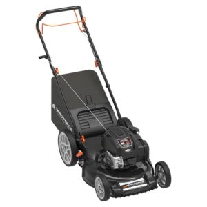 The Yard Force YF22-3N1SP RWD self-propelled mower is powered for performance with a Briggs & Stratton ex625 engine with heavy-duty features for durability and high performance. Easy starting with Briggs & Stratton s ReadyStart starting system no prime or choke, just one pull every time. Easy maintenance this engine never needs an oil change with Briggs & Stratton s Just Check & Add technology. Simply add oil if it s low. Self-propelled drive is essential for yards with hills and slopes of all degrees to maintain a consistent cut and is safer by providing more control during operation. This mower features a durable 22 steel deck with the convenience of a single lever that adjusts the deck height of all four wheels together. You ll have 3 options to convert to quickly and easily without tools: rear-bag capture of clippings side discharge or mulching, chose the best option for your type of grass to keep your lawn looking beautiful all season long! The 12 rear and 8 front wheels are PVC wrapped for durability and roll easily over all terrain. The handle can fold in the middle with the quick-turn knobs for more compact storage when needed. The YF22-3N1SP mower will provide reliable performance and a precision cut season after season. Yard work made easy