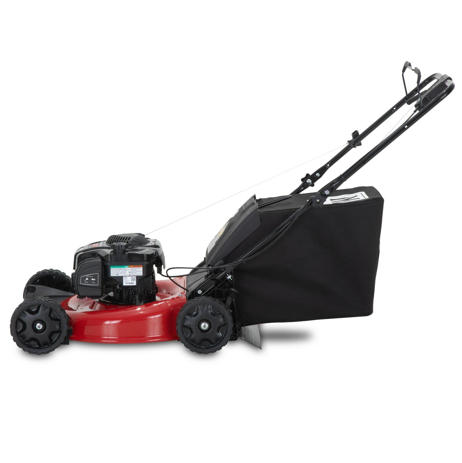 When you need the job done right, Yard Machines is here to help. This self-propelled lawn mower can quickly tackle small-to-medium sized yards with rear-wheel drive system that helps you mow through obstacles and uneven terrain quickly. A 150cc OHV Briggs & Stratton gas powered engine delivers reliable power to quickly get the job done. A 21″ deck comes with 3 options for grass clippings, side discharge, mulch or rear bag with the included bagger. 8″ wheels help navigate tougher terrain with ease. Backed by a 2-year warranty, Yard Machines is here to help you take care of your yard.
