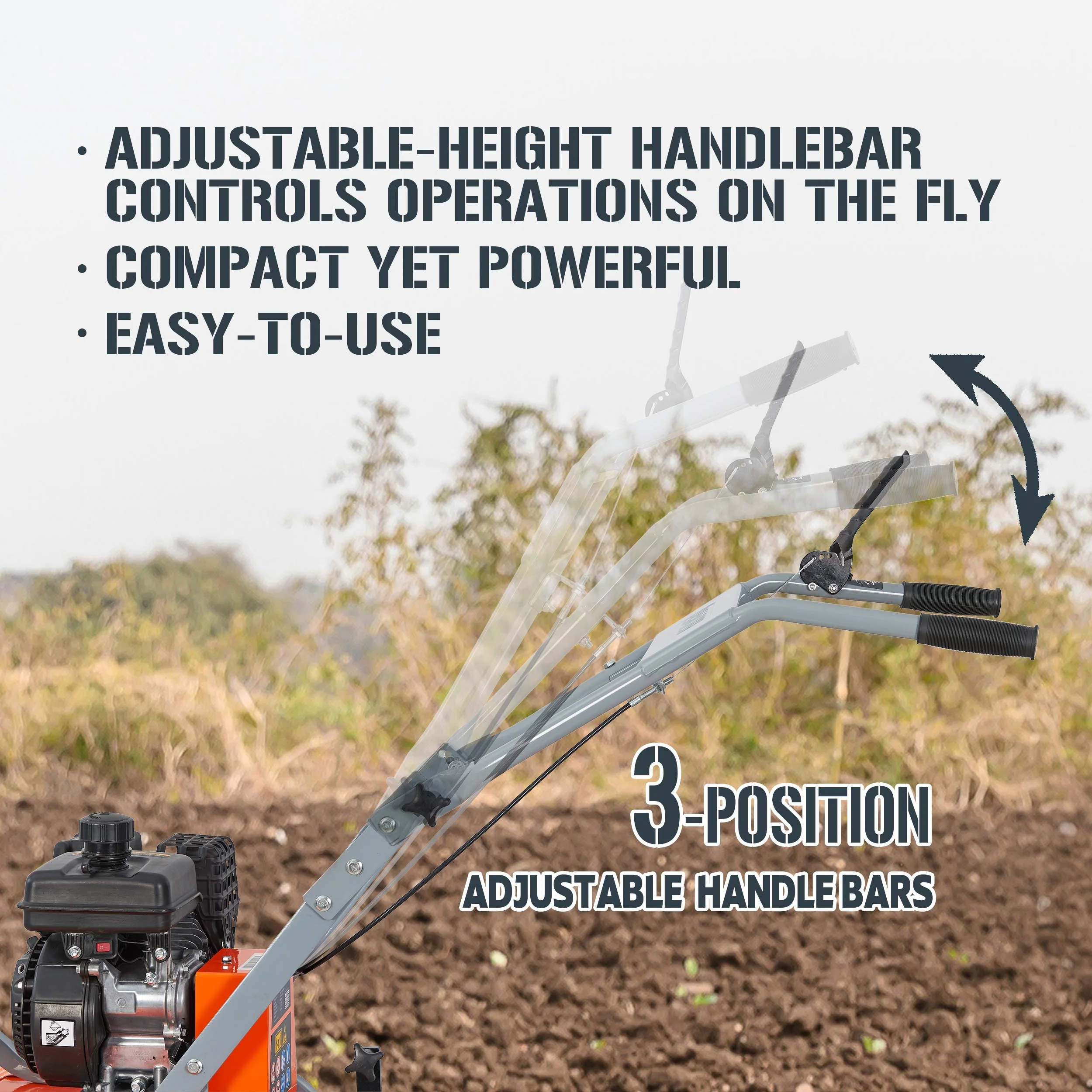 The compact – but powerful – self-propelled front tine tiller cultivates the toughest soil, turns on a dime, easily fits between garden rows, and features a 1-piece, rust-resistant tine shield. The powerful engine boasts rapid rotational speed and has a maximum tilling depth of 11 inches. The tiller can be adjusted for widths between 11 in and 21 in ideal for residential gardens, this rotary tiller has user-friendly controls that make it easy for any homeowner to use. Get the job done right, without overpaying or over-exerting to do it. With a perfect combination of practicality and performance, Yardmax provides durable products for both the typical homeowner and professional contractor. After all, no one needs to let mother nature get the best of them. With Yardmax, you can tame the great outdoors today.