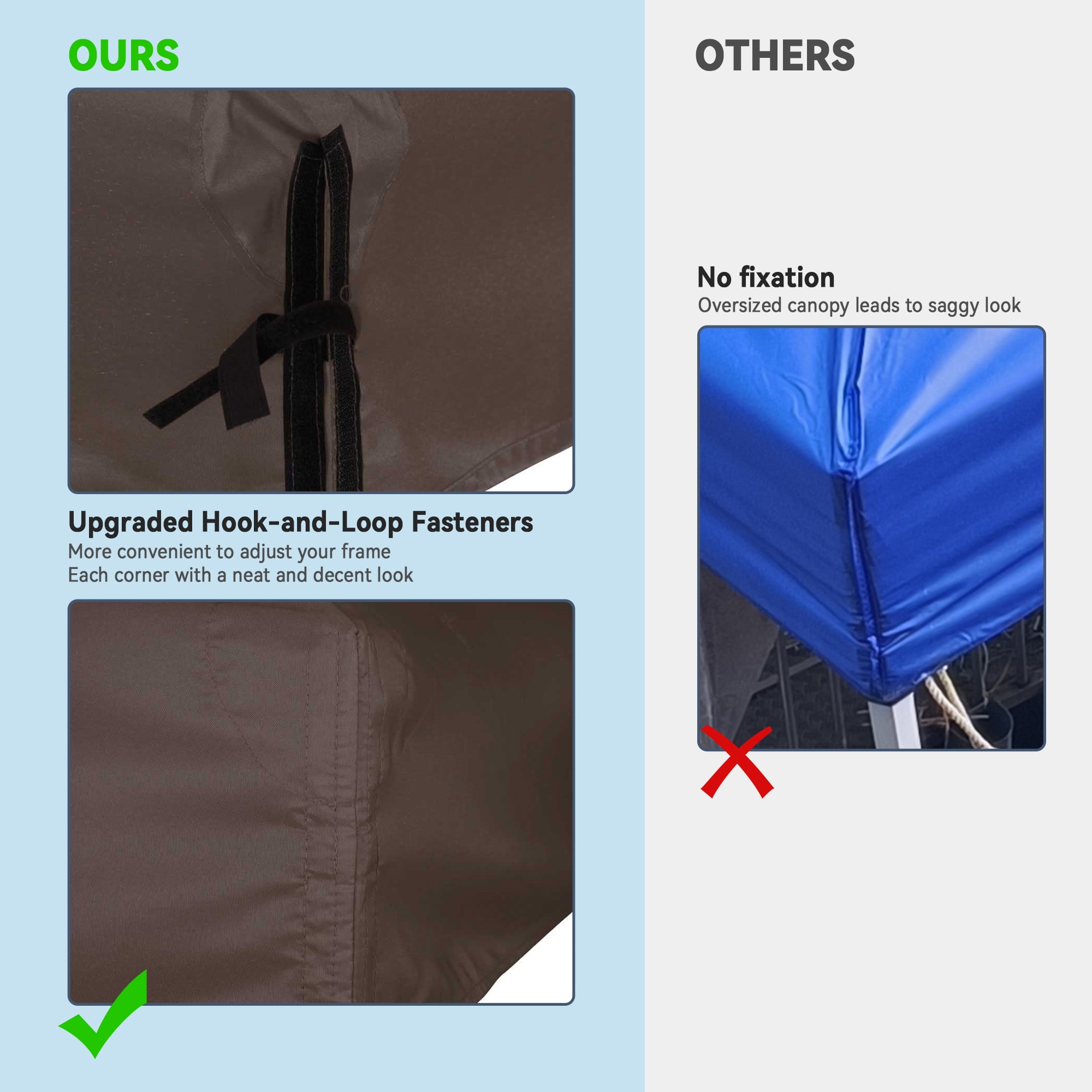 Universal 1-Tier Replacement Canopy Top for 10×10 ft one-tier gazebo frames, gives you a perfect outdoor shade to enjoy leisure time UV30+ Protection – Made of 200 g/sqm polyester with PA coating & UV30+ protection to block out harmful sunray Tool-free Installation – Hook & loop fasteners for easily fixing canopy onto frame Reinforced Corners & Vent Hole – Reinforced corners for better protection; 16 grommets for ventilation & drainage Measuring Tips – Measure the hemline and hypotenuse of the frame