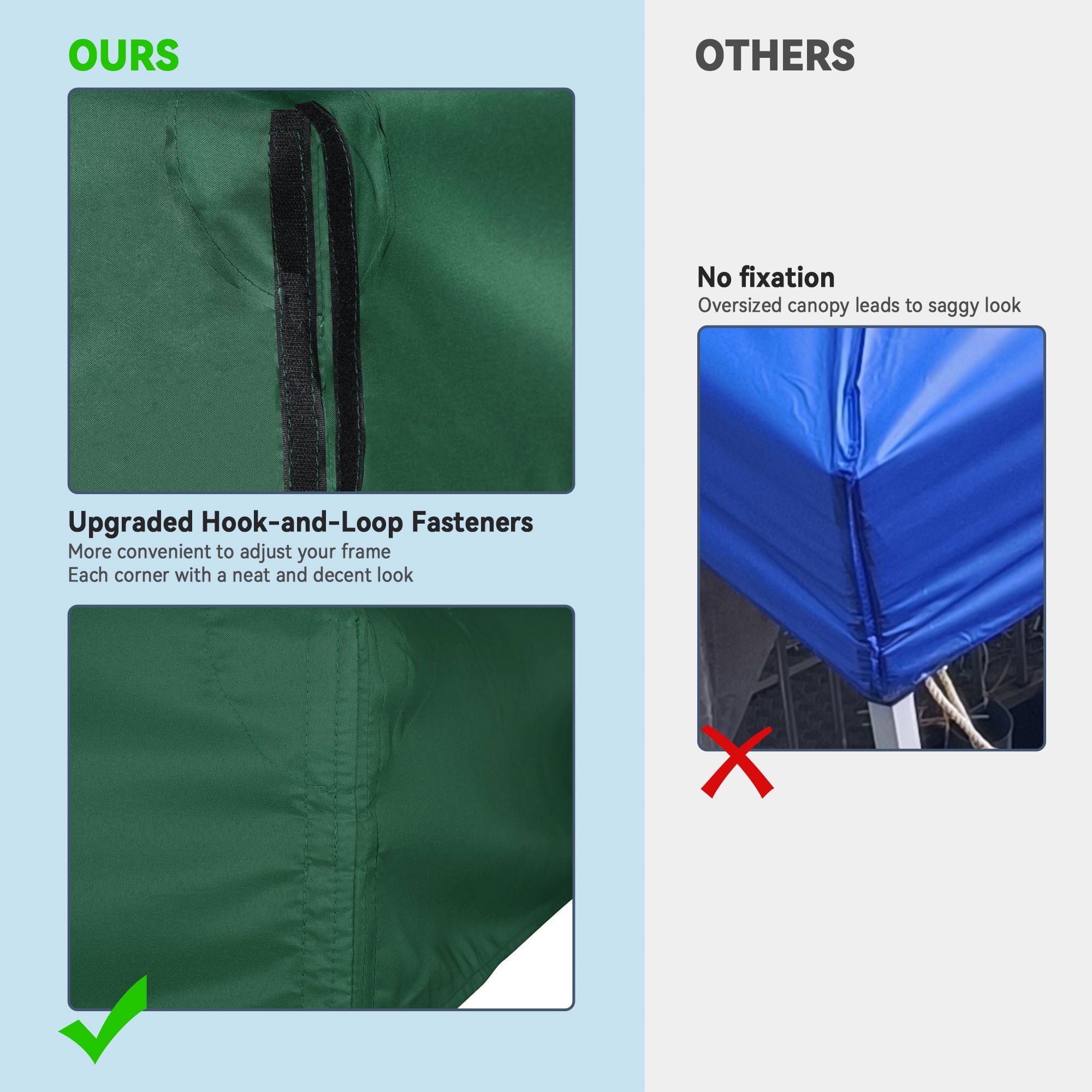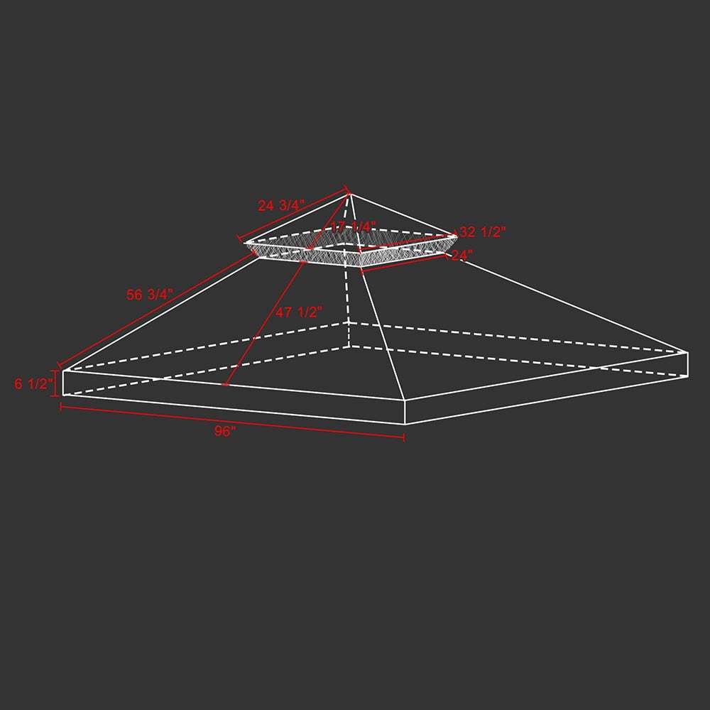 Universal 2-Tier Replacement Canopy Top for 8×8 ft dual-tier gazebo frames, gives you a perfect outdoor shade to enjoy leisure time UV30+ Protection – Made of 200gsm polyester with PA coating & UV30+ protection to block out harmful sunray Zippered Ventilated Top – Comes with mesh netting between 2 tiers & 4 grommets on each side for ventilation Simple Installation – Hook & loop straps for easily fixing canopy to frame Measuring Tips – Measure the upper tier hemline, bottom tier hemline & hypotenuse