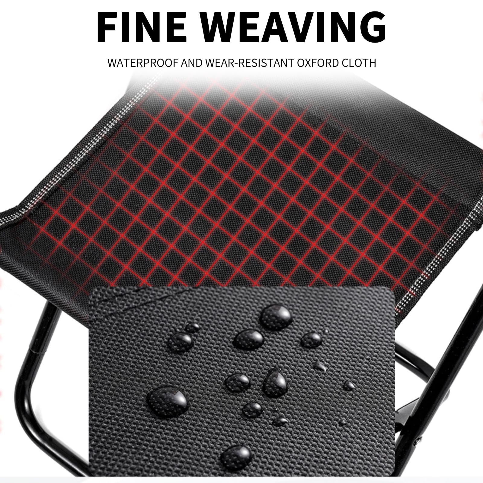 Sturdy Frame: X-shaped design and non-slip foot cover,improve the stability of the stool,shaped stable frame structure with high-strength hardware accessories gives you a stable sense of security. Quality Material: Made of oxford fabric and high-quality steel pipe. finely woven, wear- and stain , easy to clean without wrinkles ,The fabric features with wear-resistant, tear-resistant, comfortable, and breathable. Portable: Sturdy steel construction provides a durable design that opens and fold up within seconds. This folding stools for adults portable won’t take up any space on your travels and always provide you with a place to sit. Multipurpose: Portable Collapsible Stool is very suitable for indoor and outdoor.Such as kitchen, living room, bedroom,Bathroom, office, camping, travel, fishing, leisure, grilling, gardening,BBQ, picnic,hiking,queuing and even on the subway!The beauty, functionality, durability and portability of foldable stool make it as a best choice for friends and family for holidays or any occasions. Light:Lightweight aluminum alloy frame outdoor portable folding stool, lightweight and convenient to use.