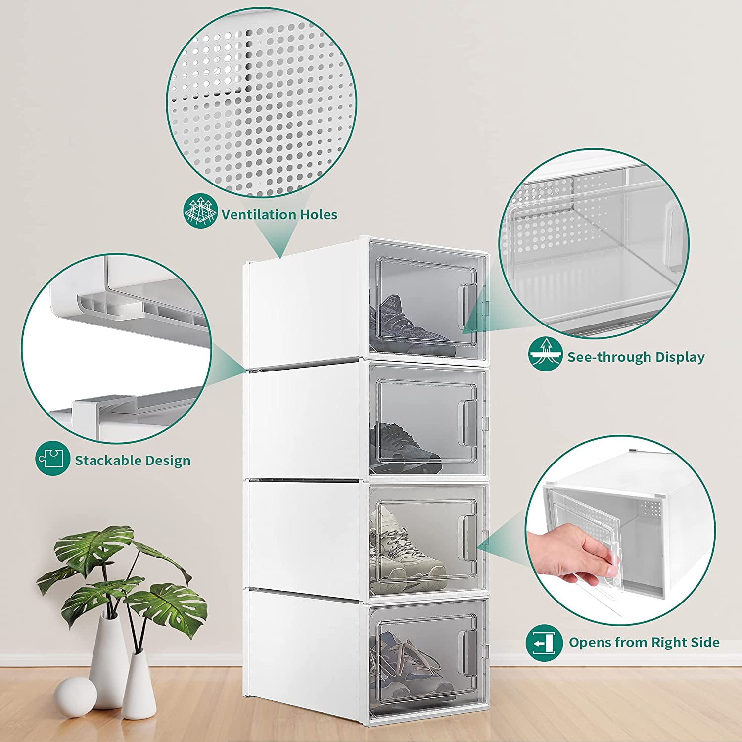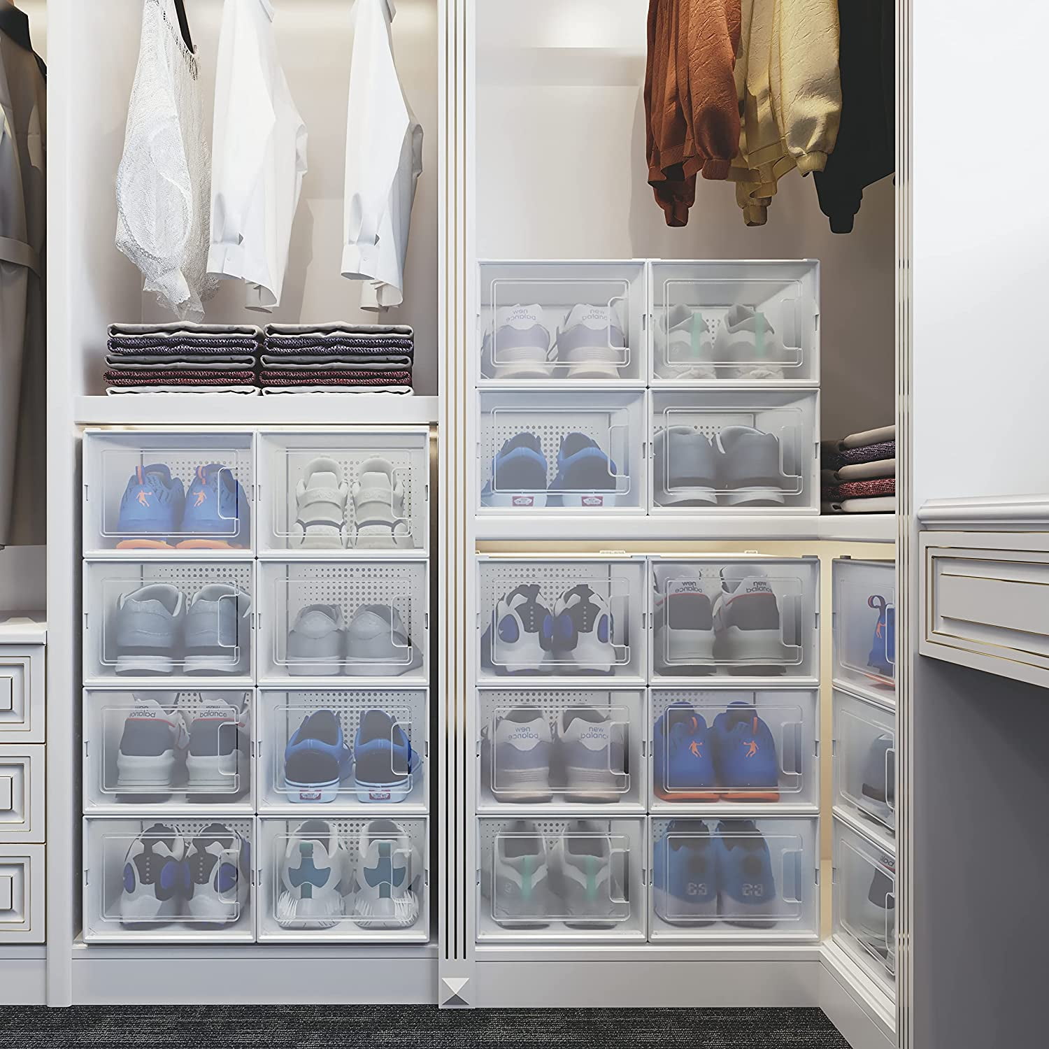 YITAHOME – PURE & EASY Multifunctional Stackable Storage for Every Household! YITAHOME stackable organizers provide additional storage space no matter where you need it, keeping your home comfortable and tidy. Place your YITAHOME stackable organizers around the house to prevent clutter in every room. YITAHOME Shoe Box Organizer Features: Stack as You Please: Stack your YITAHOME storage boxes however and wherever you want! High-quality: Made of clear ABS plastic which allows you to easily find what you are looking for. Easy to Stack: The top and bottom edges of YITAHOME shoe boxes stack on top of each other seamlessly. Ventilation: The ventilated design facilitates the air circulation in the item to ensure that there is no peculiar smell. Space-saving: Great for saving closet space! Keep a set of YITAHOME stackable shoe boxes in your closet to keep it clean and neat! Multifunctional: You can store much more than shoes! YITAHOME stackable organizers are great for cosmetics, clothing, electronics, and more.