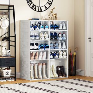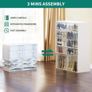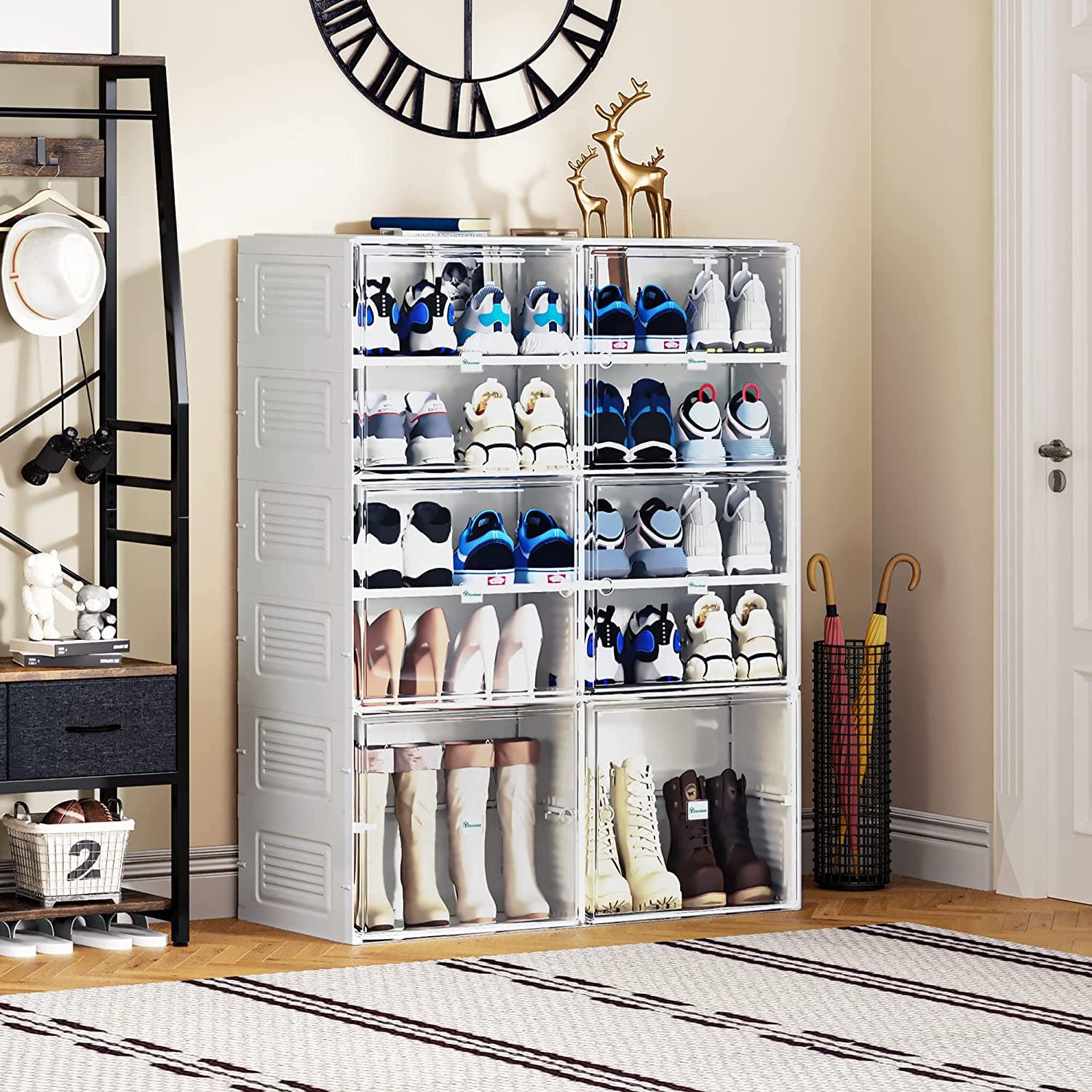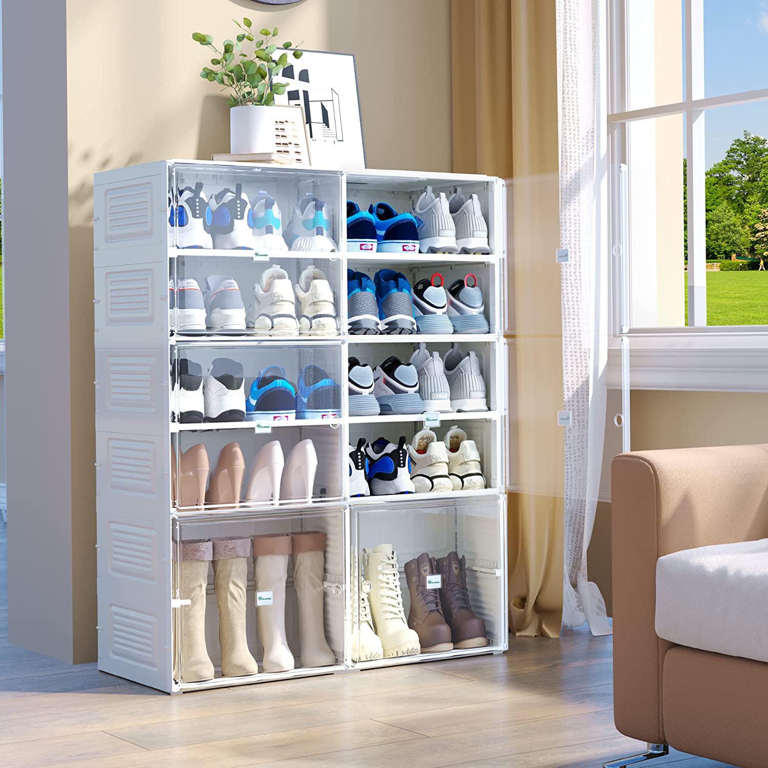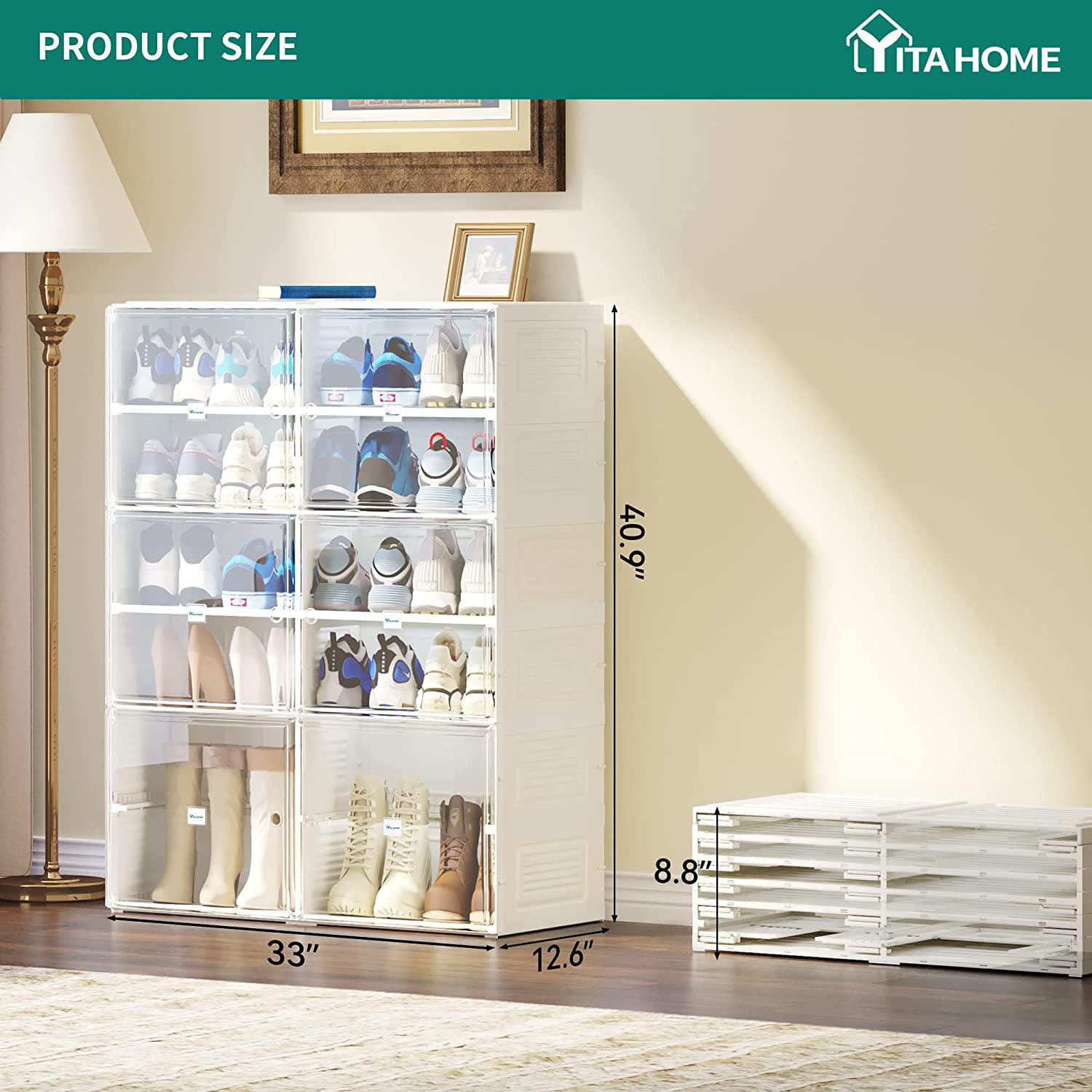 YITAHOME Shoe Storage Organizer, Installation-Free Shoe Box with Transparent Doors, 2-10 Grid Stackable Shoe Cabinet to Hold 2-20 Pairs of Shoes for Hallway, Living Room, Closet (White)