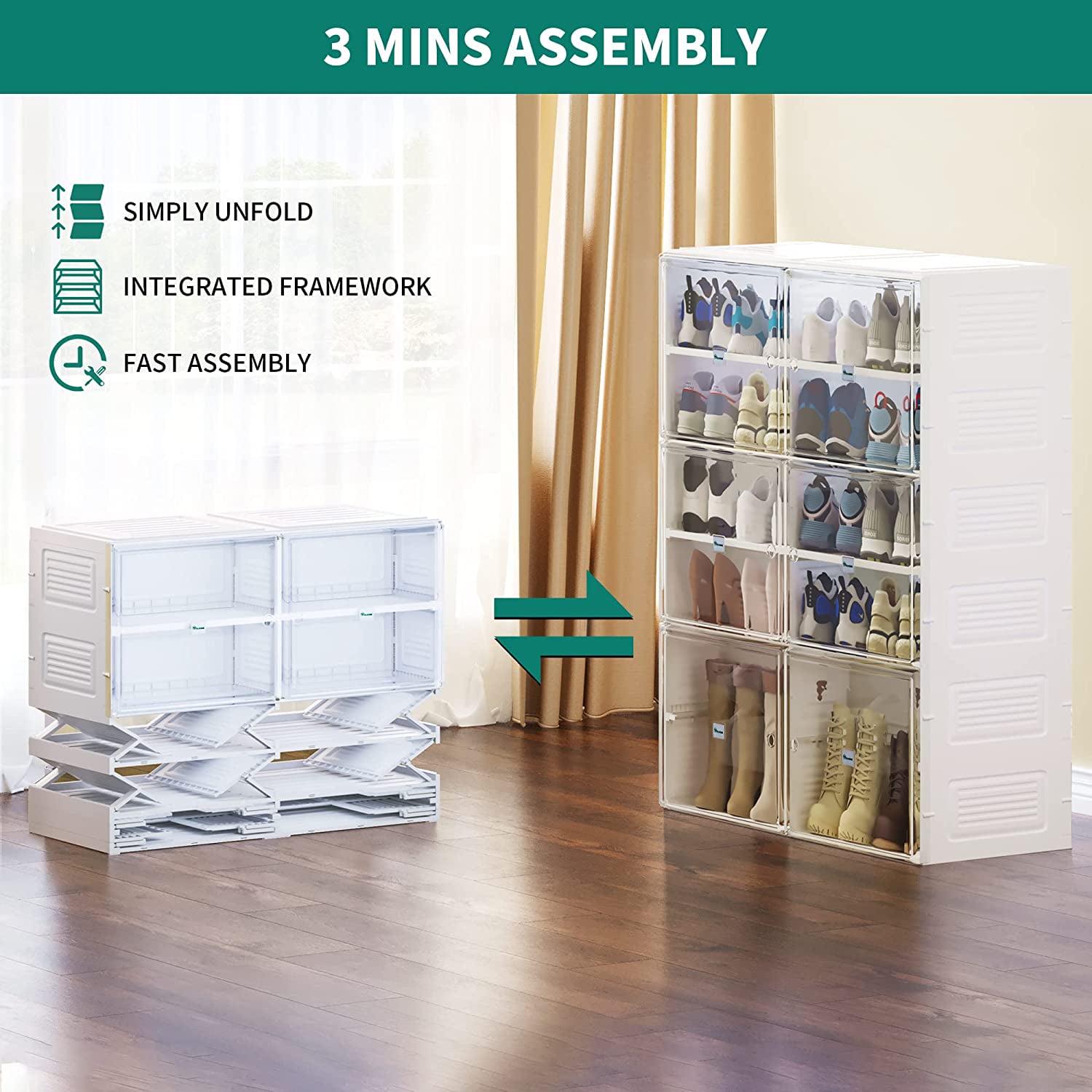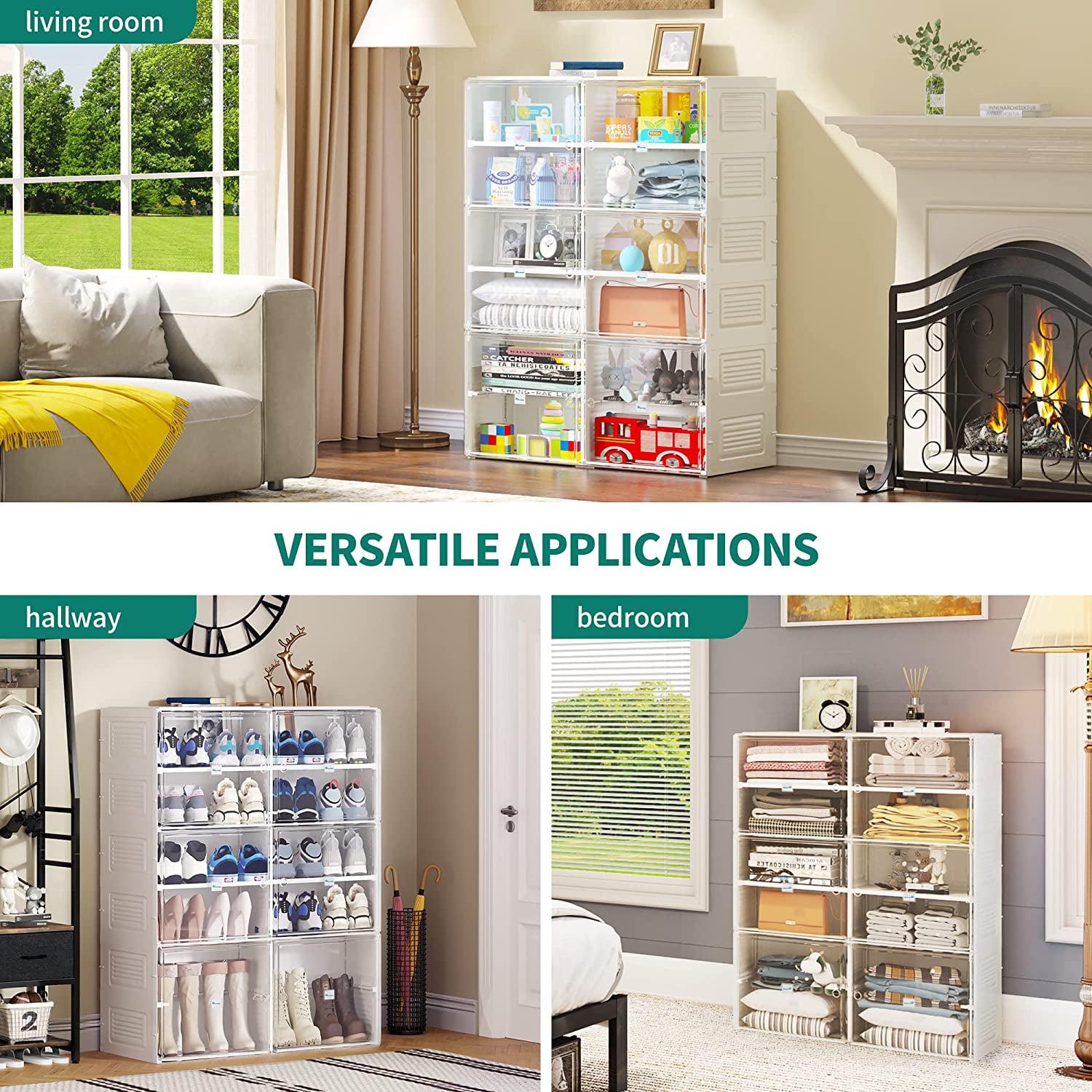 – MULTIFUNCTIONAL STORAGE BOX: A versatile shoe box that caters to all kinds of storage needs; Accommodates everything from standard-sized men’s and women’s shoes such as sneakers, boots, high heels, etc., to daily items like books, toys, cosmetics, snacks, towels, collections; Just throw them in and enjoy an organized life.