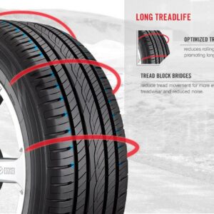 The tire’s continuous center rib maintains constant contact between the tire and the road. This enhanced road contact makes the tire more controllable and makes its handling effortless. The tire’s steering responsiveness becomes quick and accurate and it responds well to the driver’s steering instructions. The driver is able to confidently control the tire in all weather conditions.