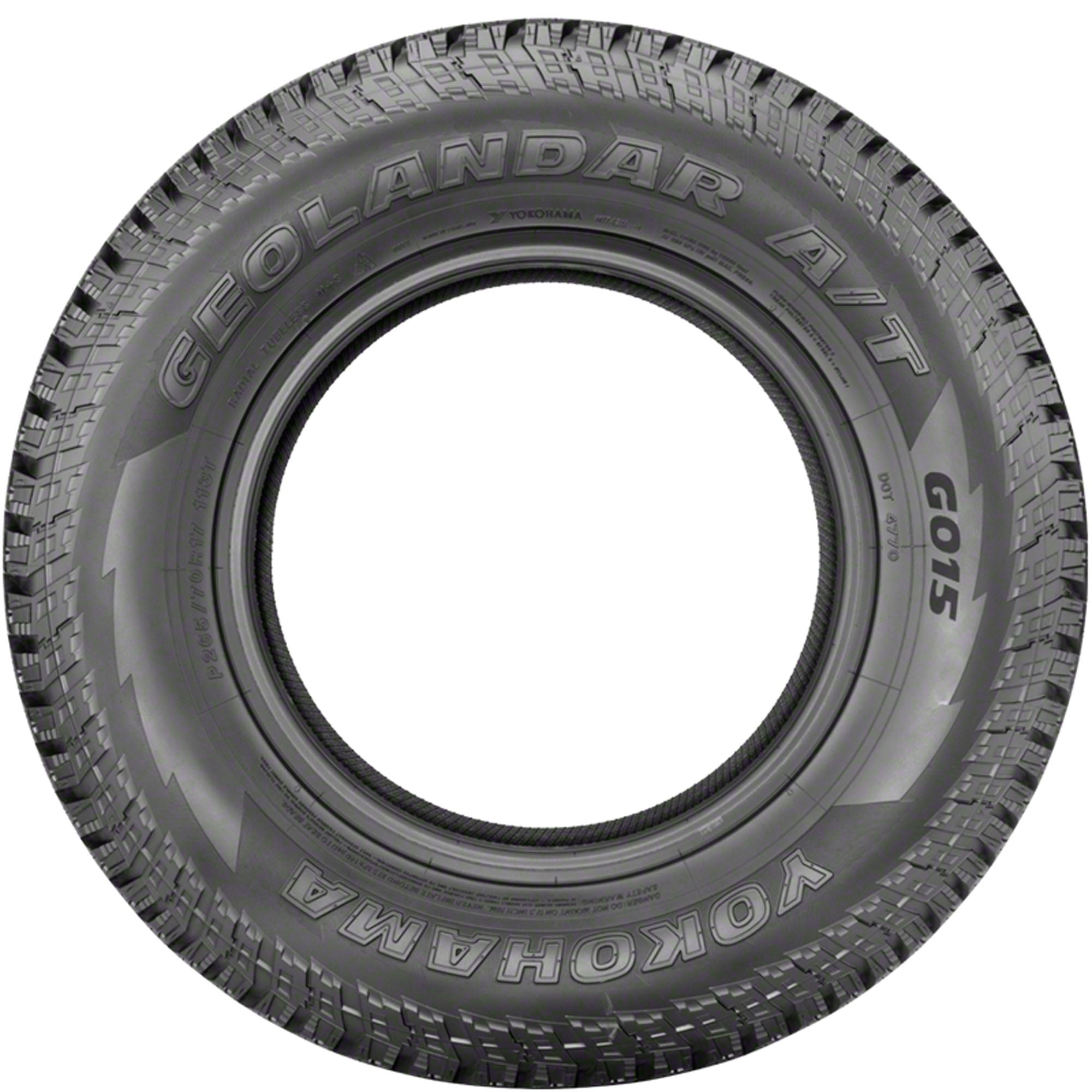 All-terrain tread design that provides all-season traction Available in Outlined While Letter or Black sidewall depending on the tire’s size 60,000 mile limited manufacturer tread life warranty on P/E-metric sizes, and 50,000 mile limited manufacturer tread life warranty on LT-metric sizes. Features a special rubber compound to give drivers enhanced braking and handling in wet and snowy weather Built-in EdgeTec Grooves push dirt and mud out of the tire, while an Enduro Compound allows the Geolandar A/T G015’s rubber to remain flexible for enhanced braking and handling in wet and snowy weather