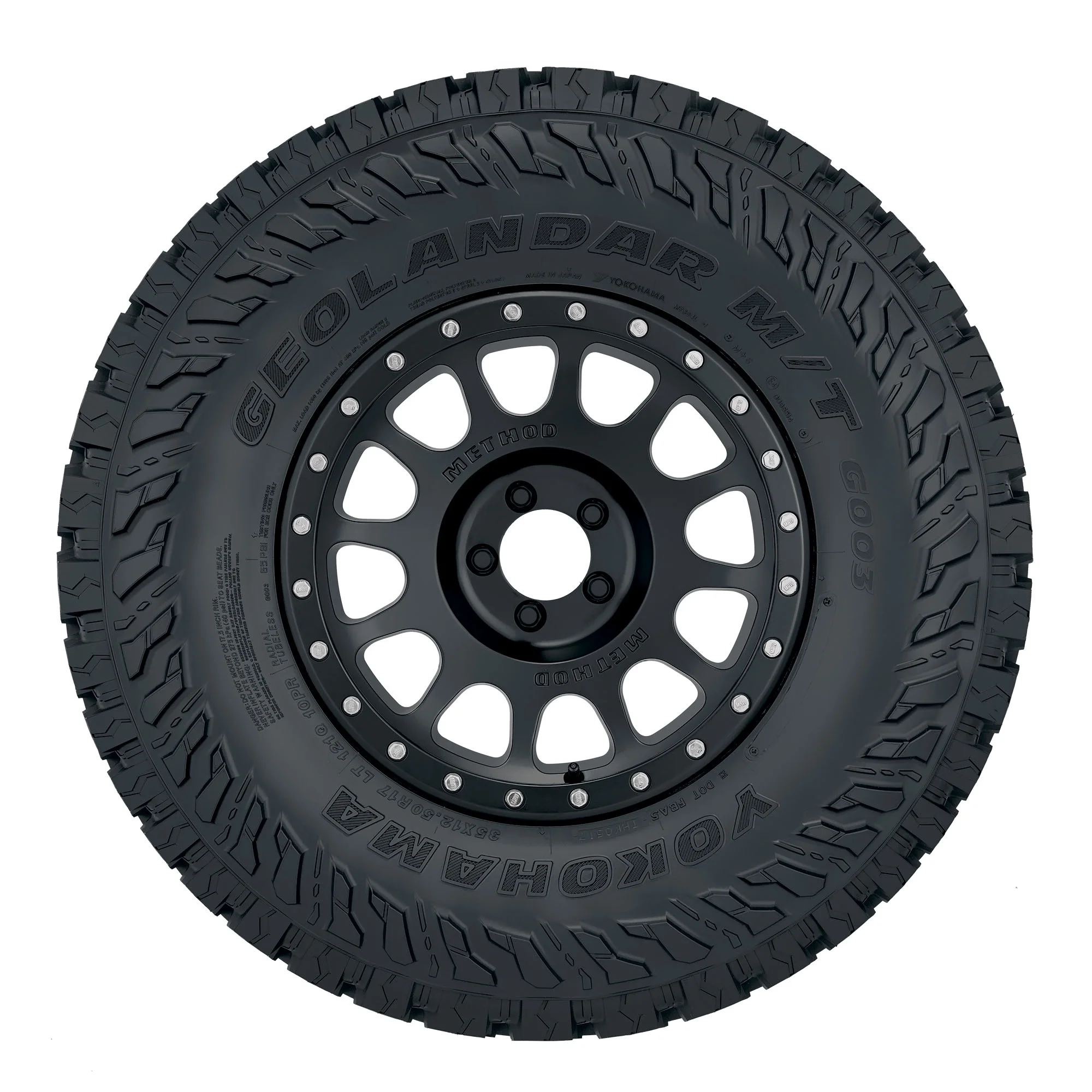 Yokohama Geolandar M/T G003 LT285/70R17 121/118Q E OVERVIEW The Geolandar M/T G003 from Yokohama is a mud terrain tire that’s designed for use on light trucks and SUVs. Built with Geo-Shield technology that protects the tire from damage and increases traction off road, the Geolandar M/T G003’s aggressive sidewall further boosts traction and protects the tire from side impacts. The Geolandar M/T G003 utilizes mud and stone ejectors within its grooves that promote self cleaning and protect the casing from damage, and the tire is backed by Yokohama’s 30 Day Satisfaction Guarantee.