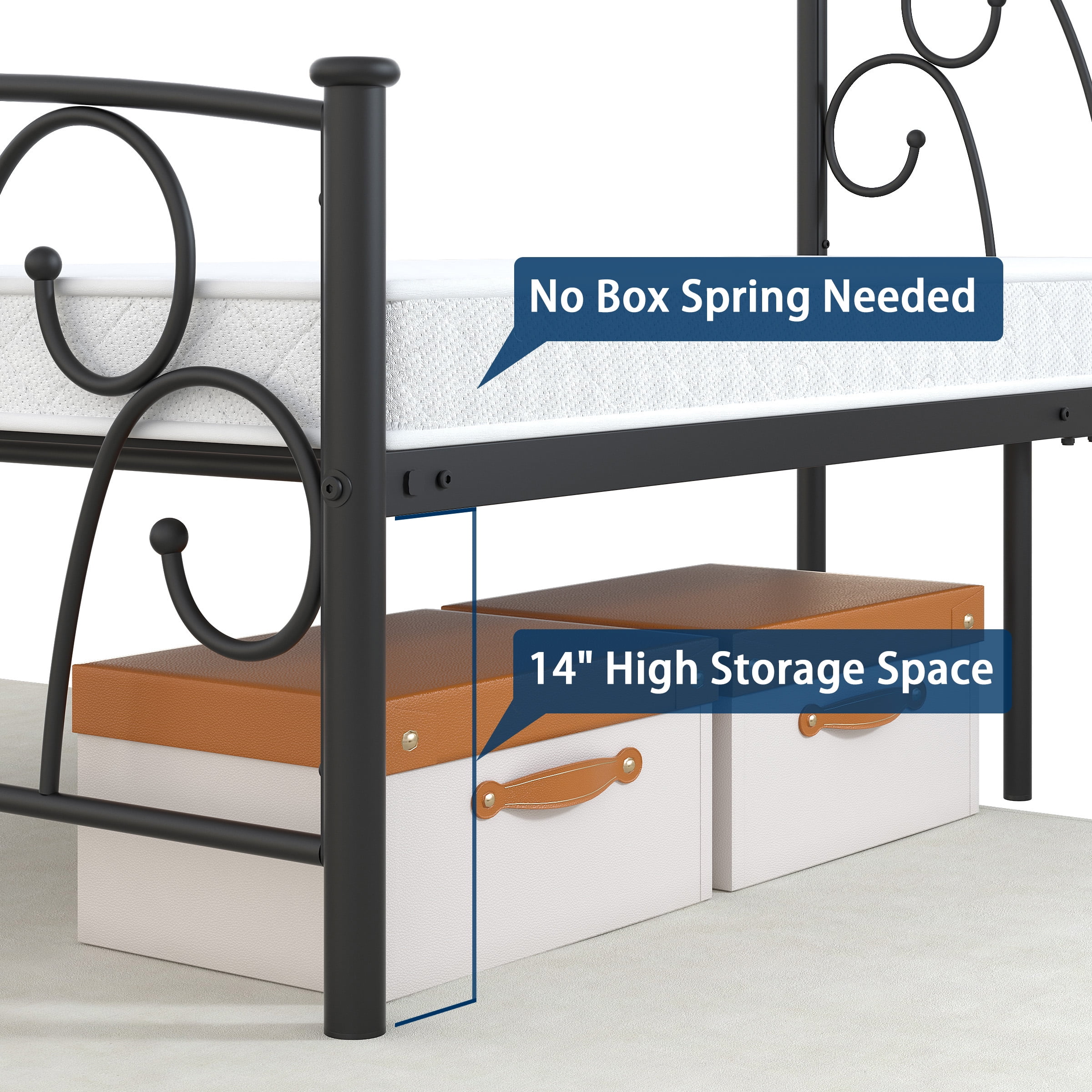 Yoneston 14″ Heavy Duty Twin Metal Platform Bed Frame with Headboard for Bedroom Furniture, Black