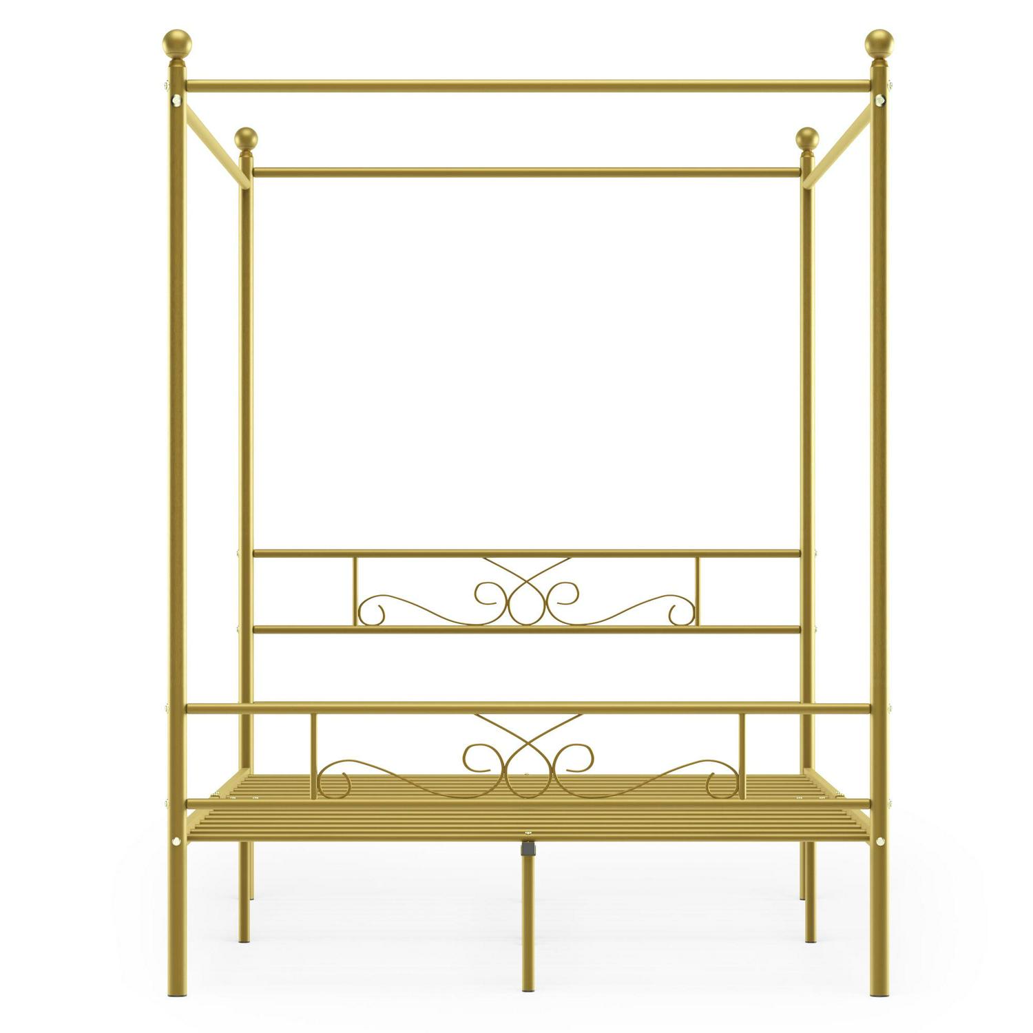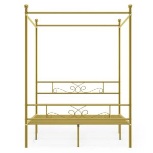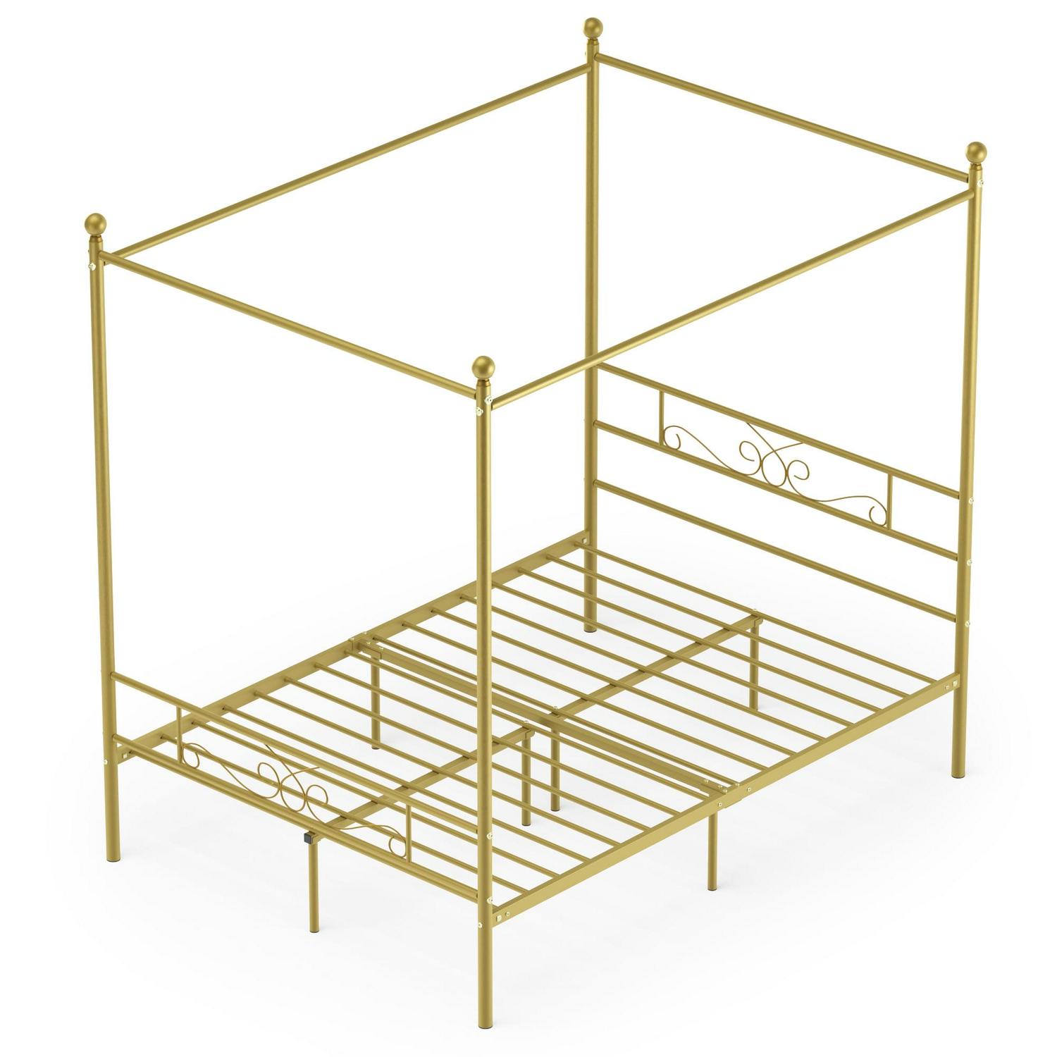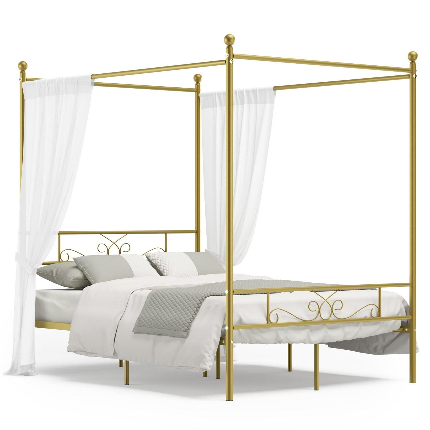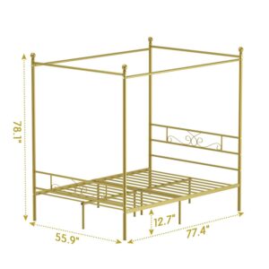 Yoneston 4-Post Metal Canopy Bed Frame Strong Metal Slat Support Mattress Foundation, Full, Gold