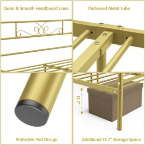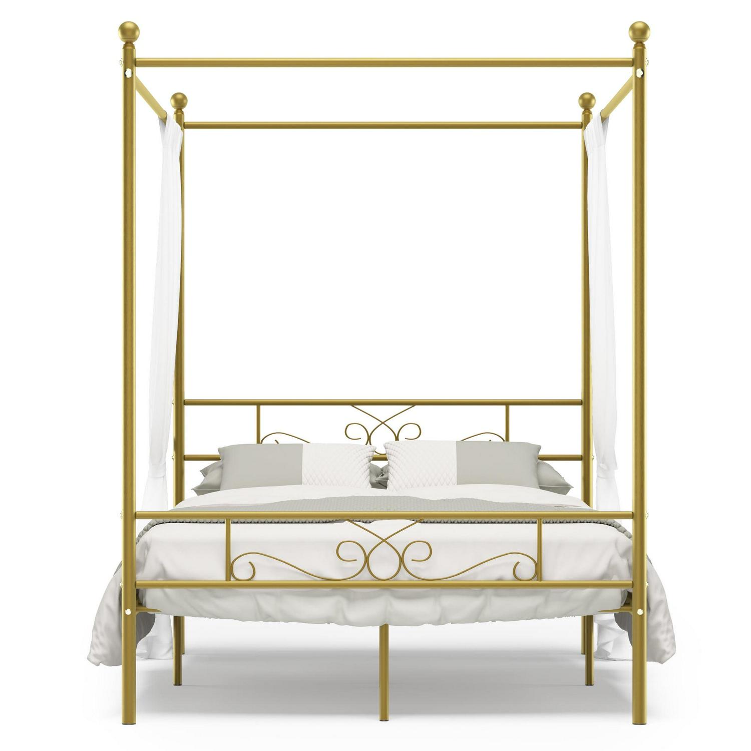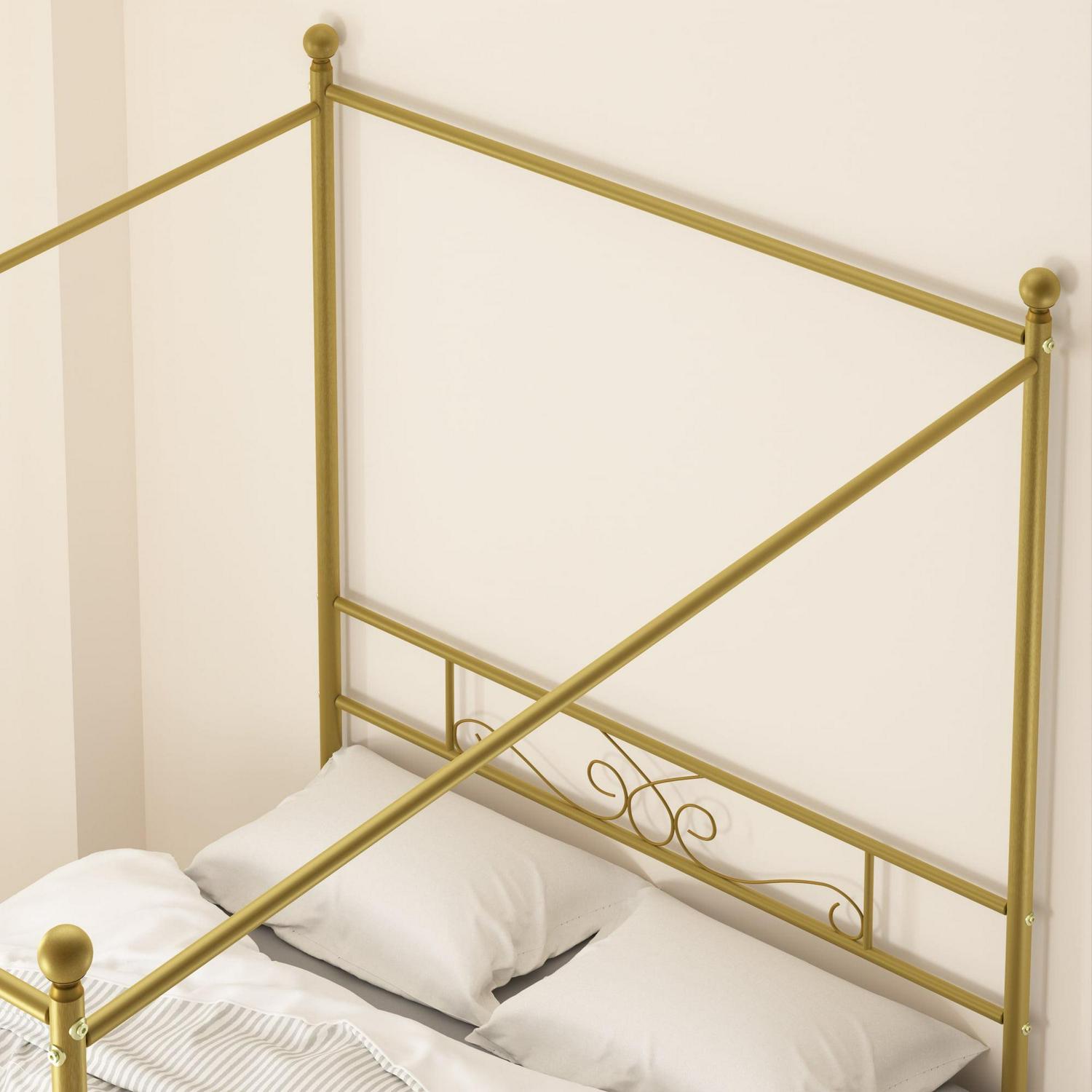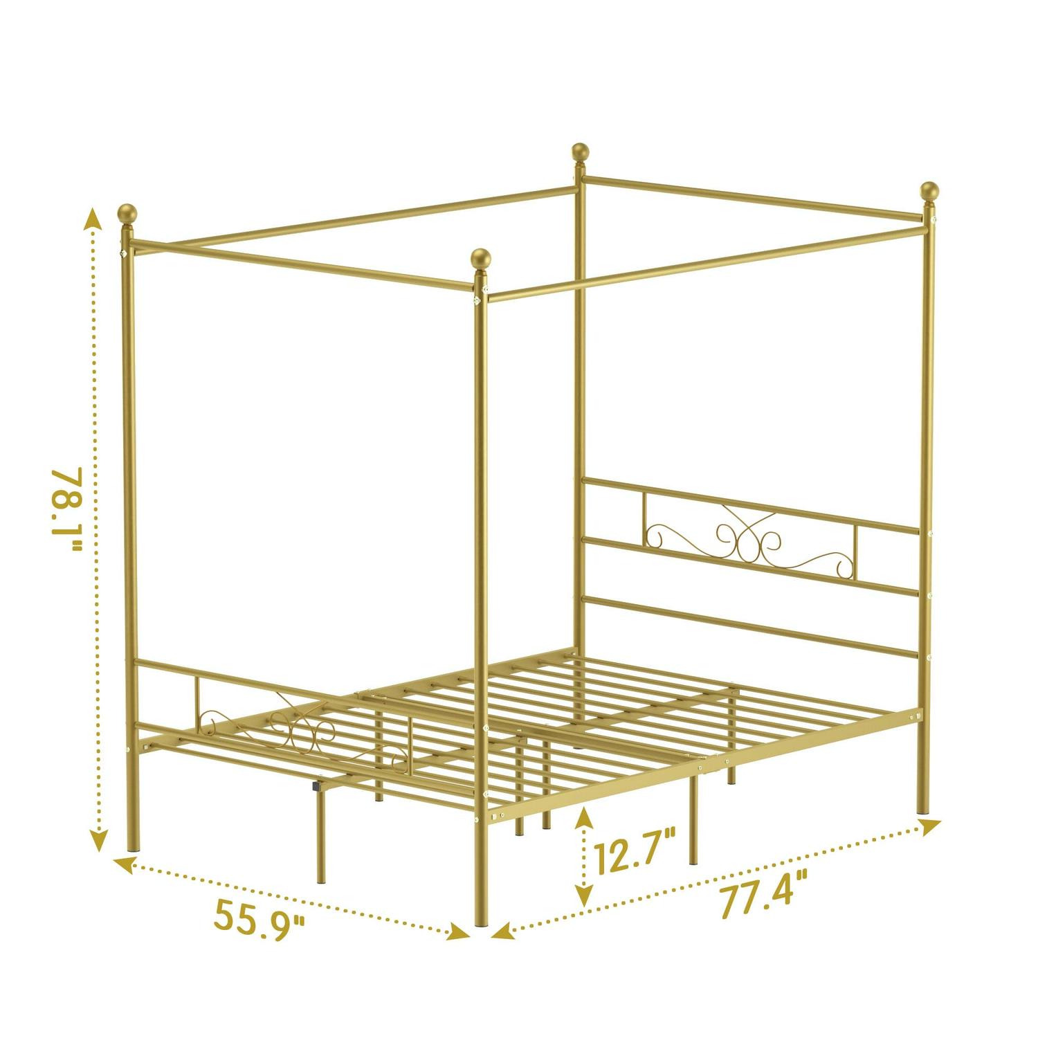 Yoneston 4-Post Metal Canopy Bed Frame Strong Metal Slat Support Mattress Foundation, Full, Gold