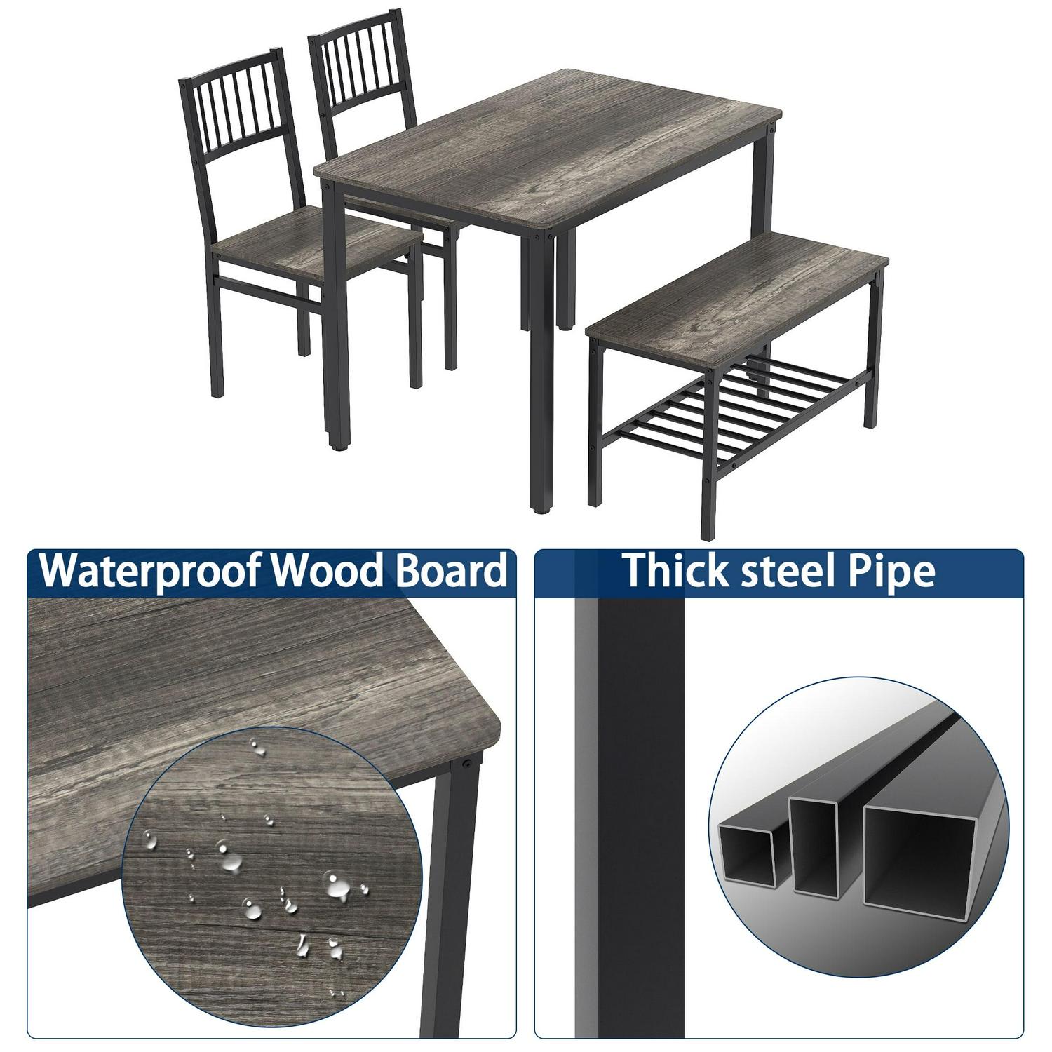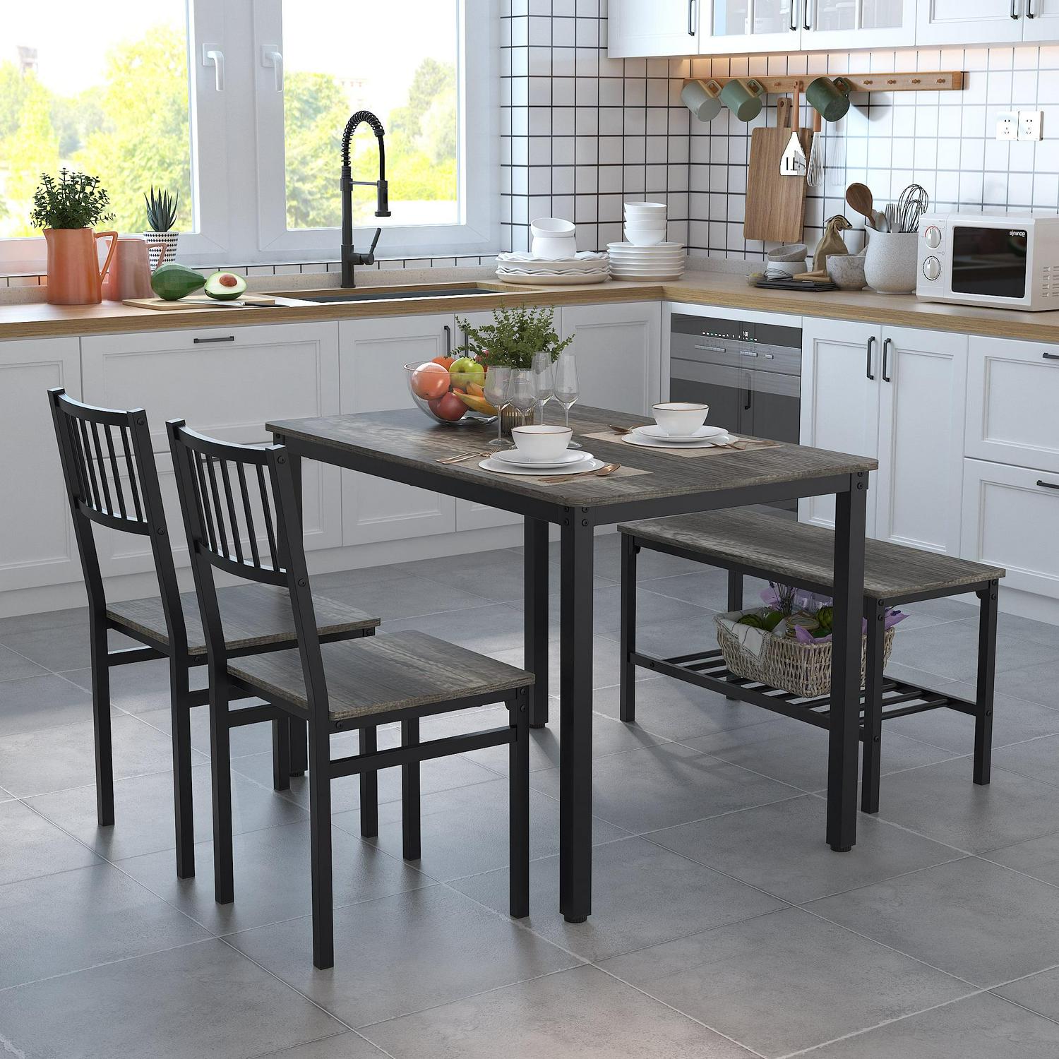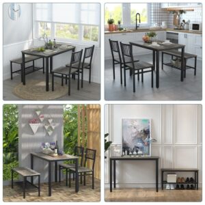 Yoneston Dinner Table 4 Seats, Kitchen Breakfast Table Set with Chairs and Bench, Oak