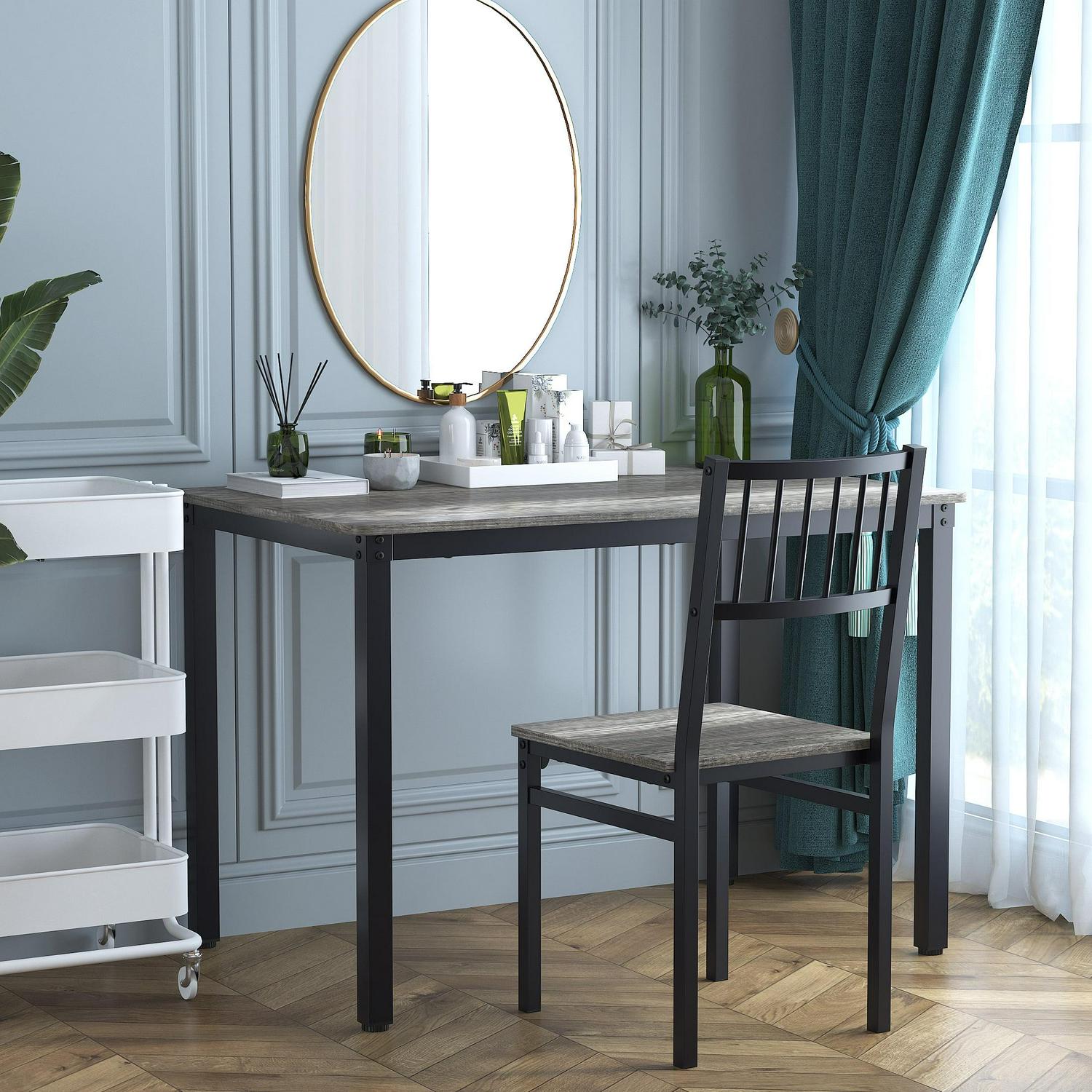 Want to uplift your dining area The design of this small kitchen table is simple but it is classic and will never be out of date. The minimalist design will fit almost any style, and when the wooden surface is complemented by the slim metal legs, this kitchen table set exudes a strong rustic vibe, making your room stylish yet chic. Thanks to the earthy neutral color palette and wood-like grain, your dining&kitchen space will inject a warm and inviting feeling. Use this dining table and chairs set to enjoy good time with family and friends at the kitchen table, feel the beauty and warmth of life!