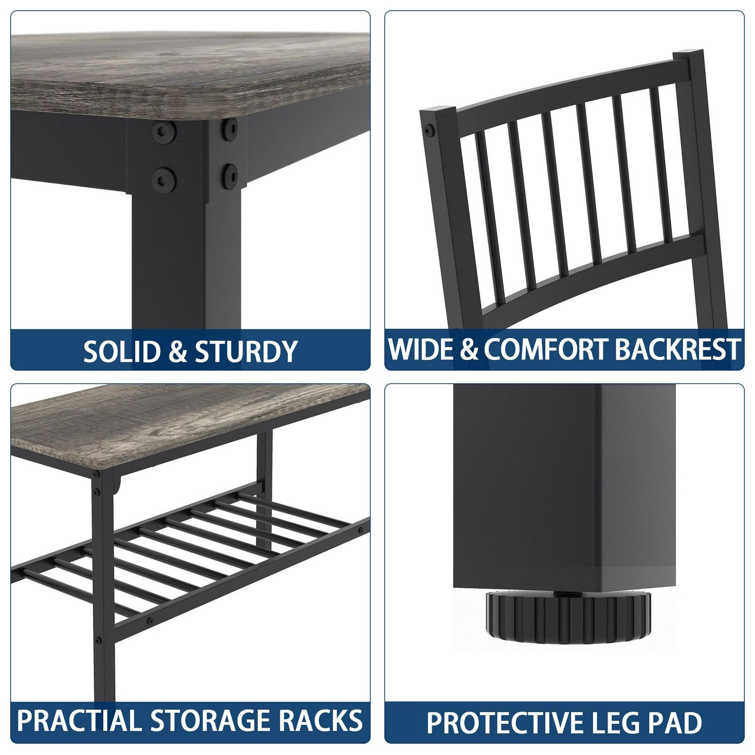 2.Strong & Reasonable Structure: The Dining Table Set tabletop is made of environmental particle board and the legs are made of heavy-duty powder-coated metal, which provides the most stability and durability. Chairs are designed to follow human body structure to offer better sitting experience.