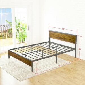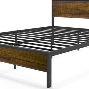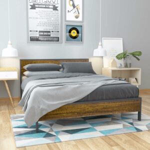 Yoneston Idustrial Metal Platform Bed Frame with Wood Headboard Full Size