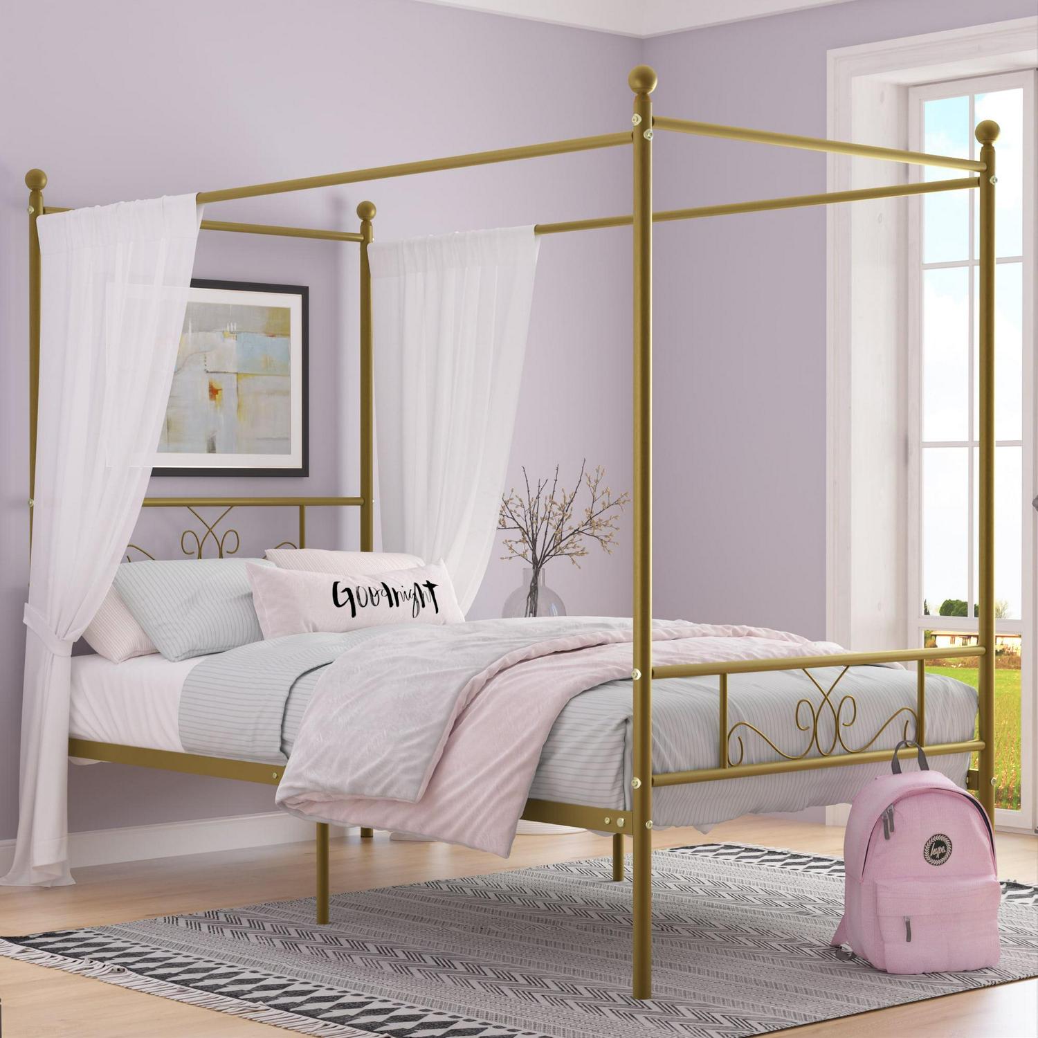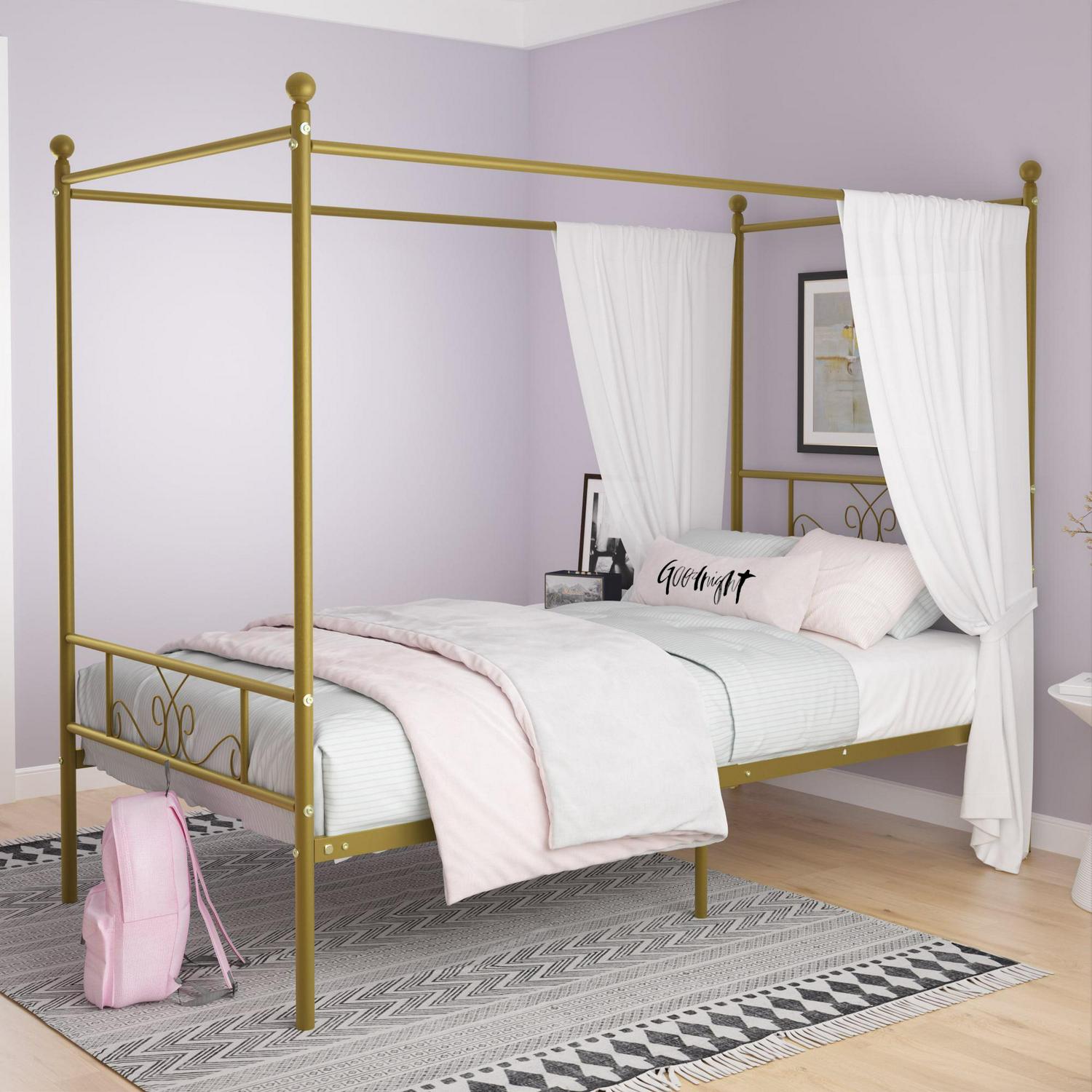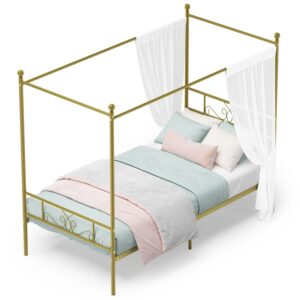 Yoneston Metal Canopy Bed Frame Twin Size 4-Post Bed Sturdy Platform Replacement with Slats for Kids Boys Girls