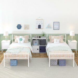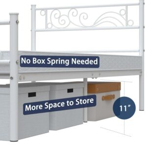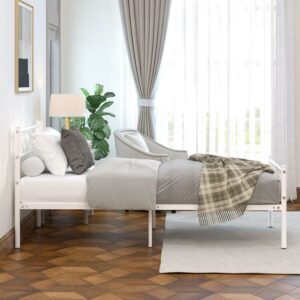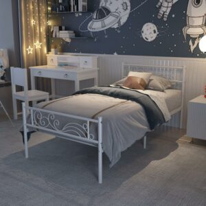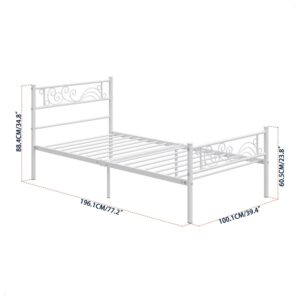 Yoneston Metal Platform Bed Frame Twin Size Single Bed frame with Wave Headboard and Footboard for Adult Bedroom Furniture, White