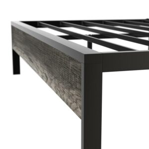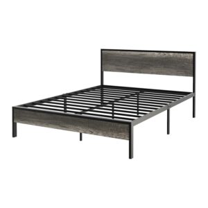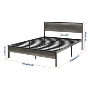 Yoneston Retro Queen Metal and Wood 14 Platform Bed with Headboard for Adults, Heavy Duty Metal Bed Frame with Metal Slat Support, Black Oak
