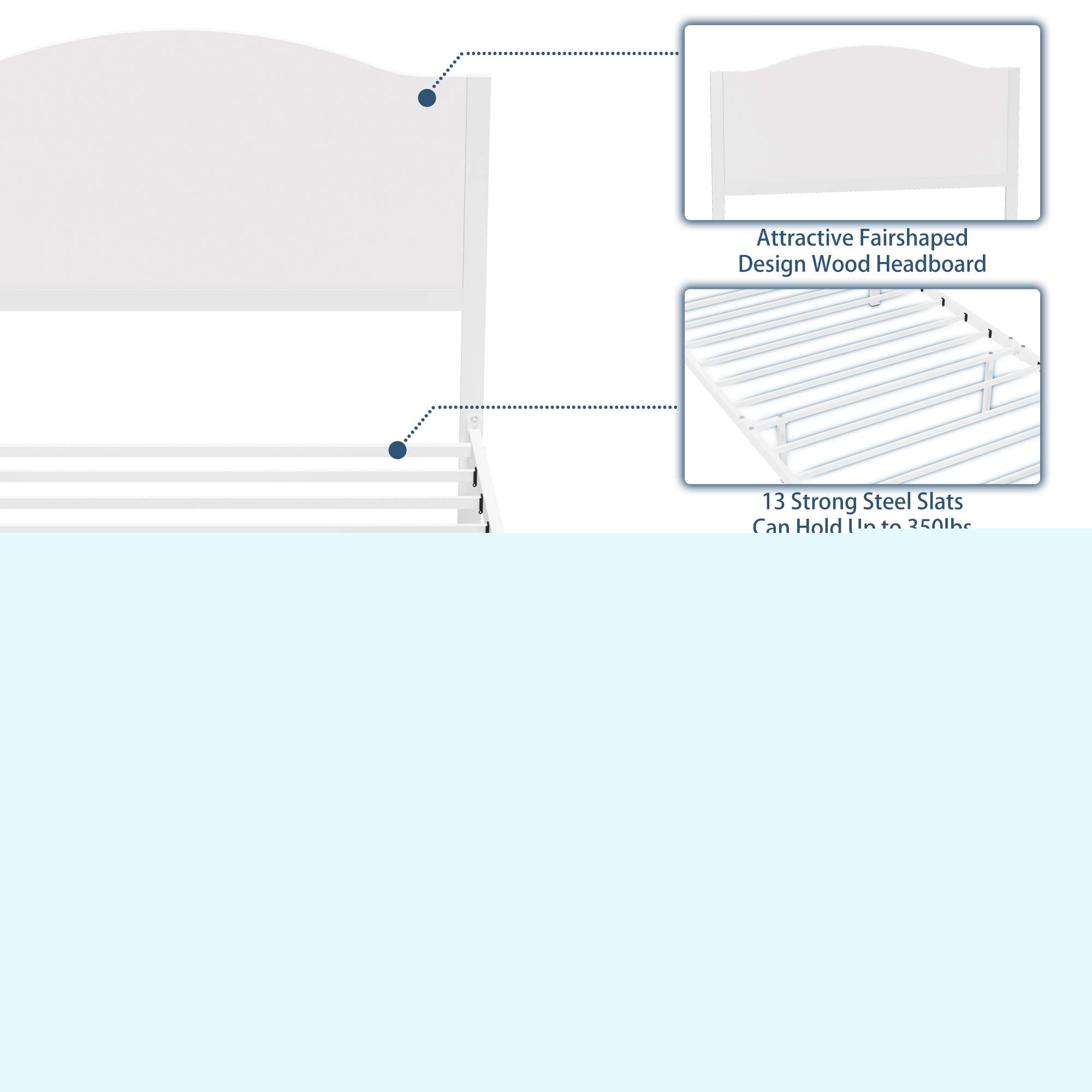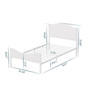 Yoneston Twin Metal Platform Bed Frame with Wood Headboard, White Finish Single Bed Frames Mattress Foundation for Kids Teens Boys and Girls, No Box Spring Needed
