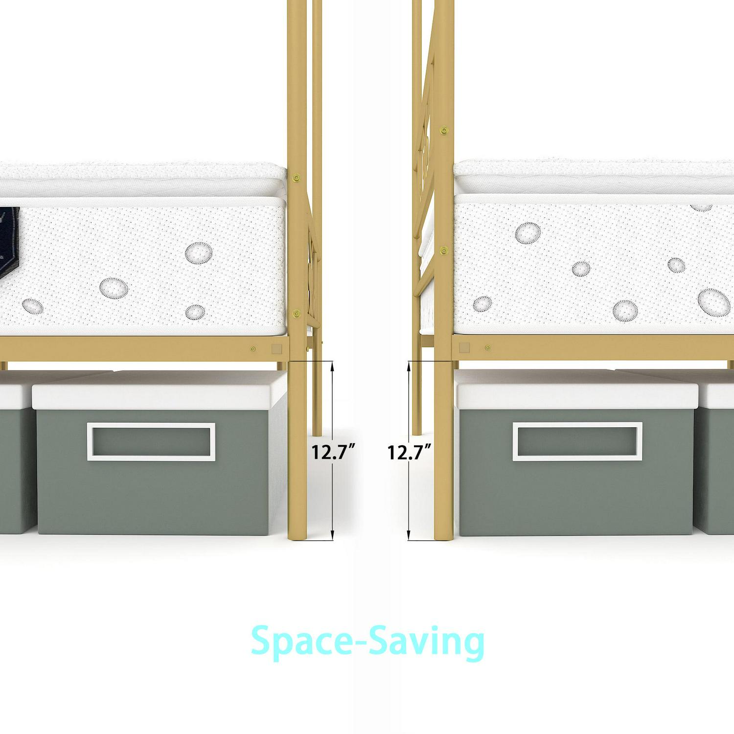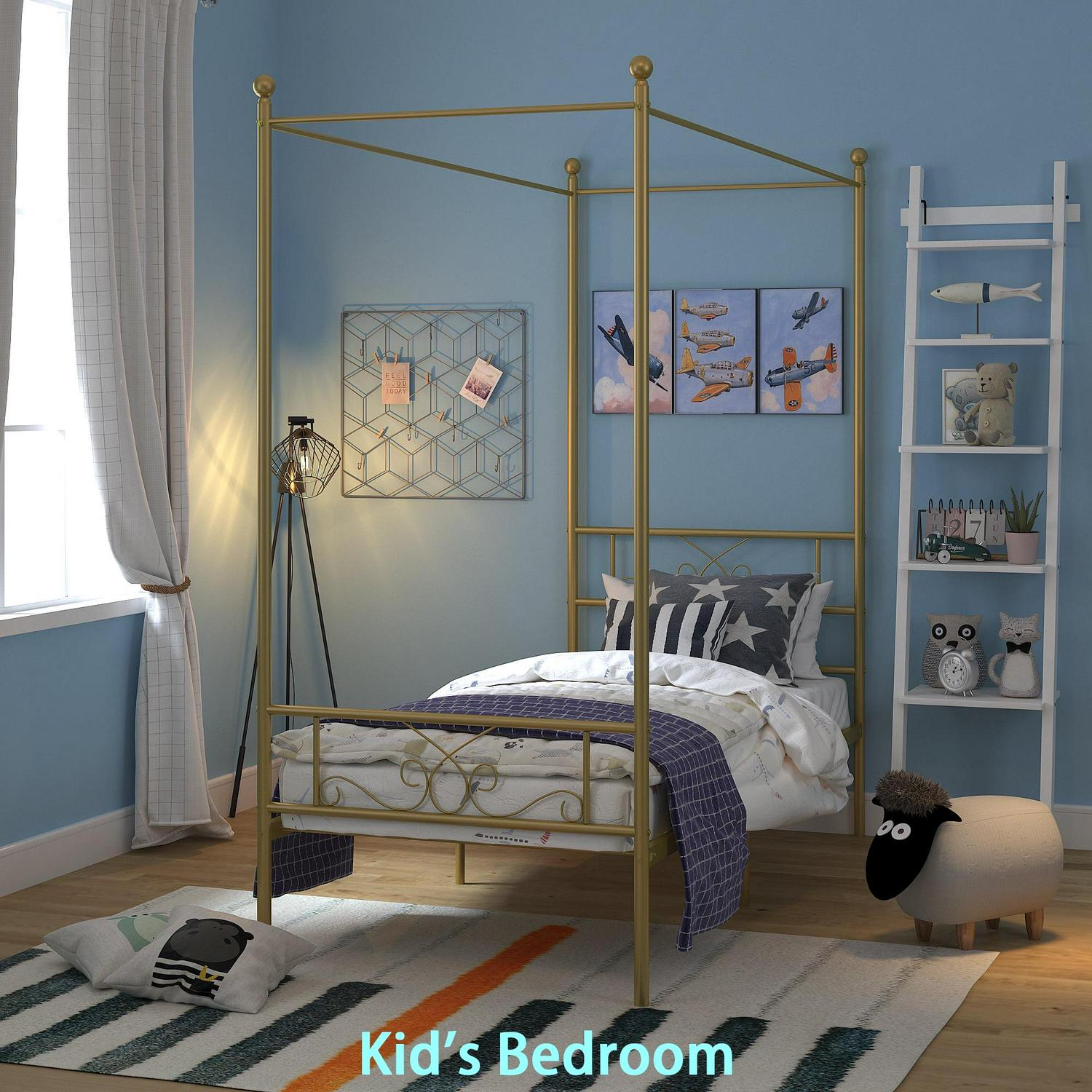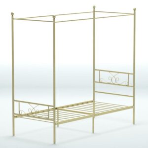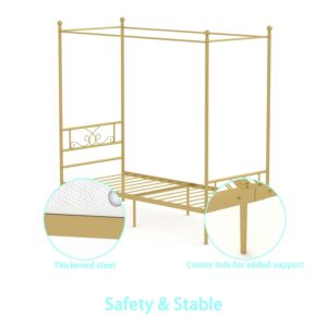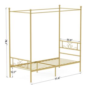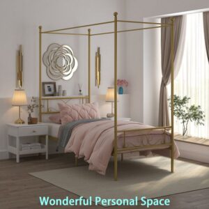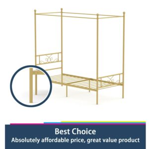 Yoneston Twin Size Canopy Bed 4-Post Metal Bed Frame Bedroom Furniture Mattress Platform Foundation for Girls Boys Kids Adults, Gold