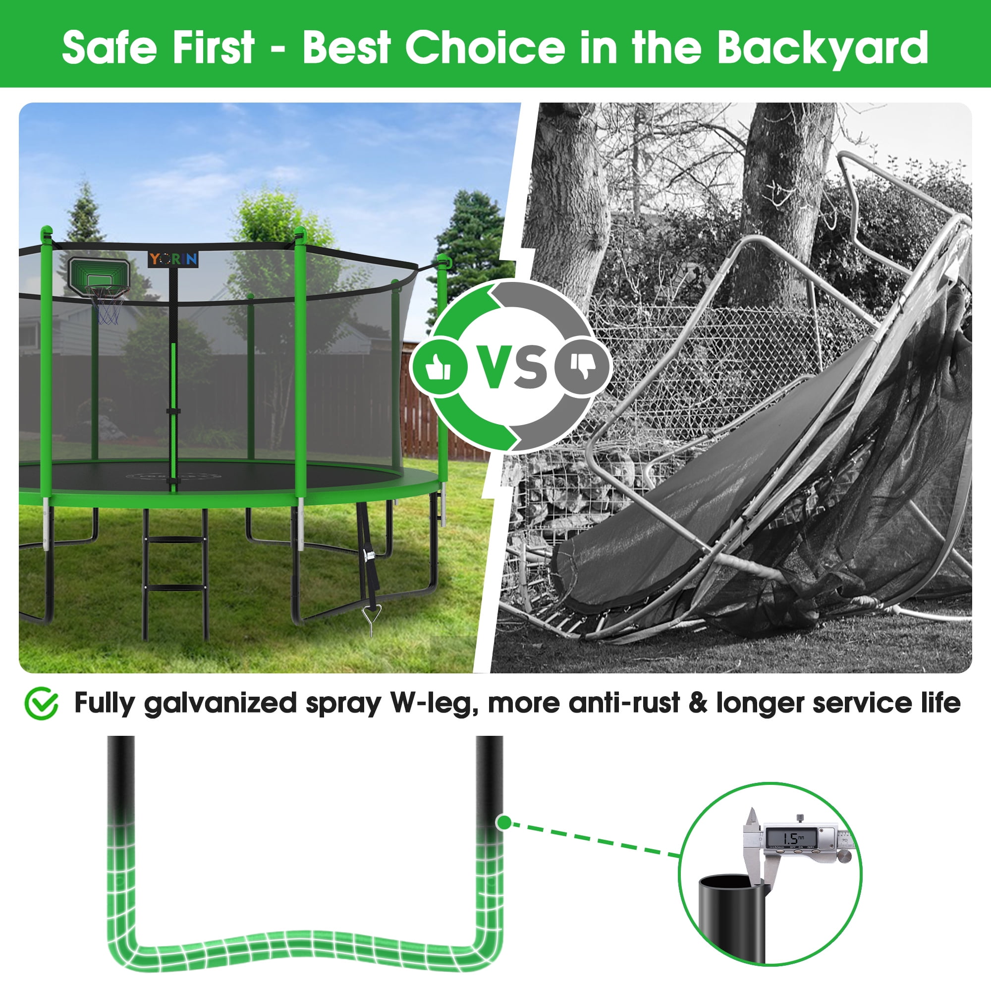 YORIN 1200LBS 12FT 14FT 15FT Trampoline for Kids Adults, Trampoline with Safety Enclosure Net, Basketball Hoop and Ladder, Outdoor Heavy-Duty Trampoline