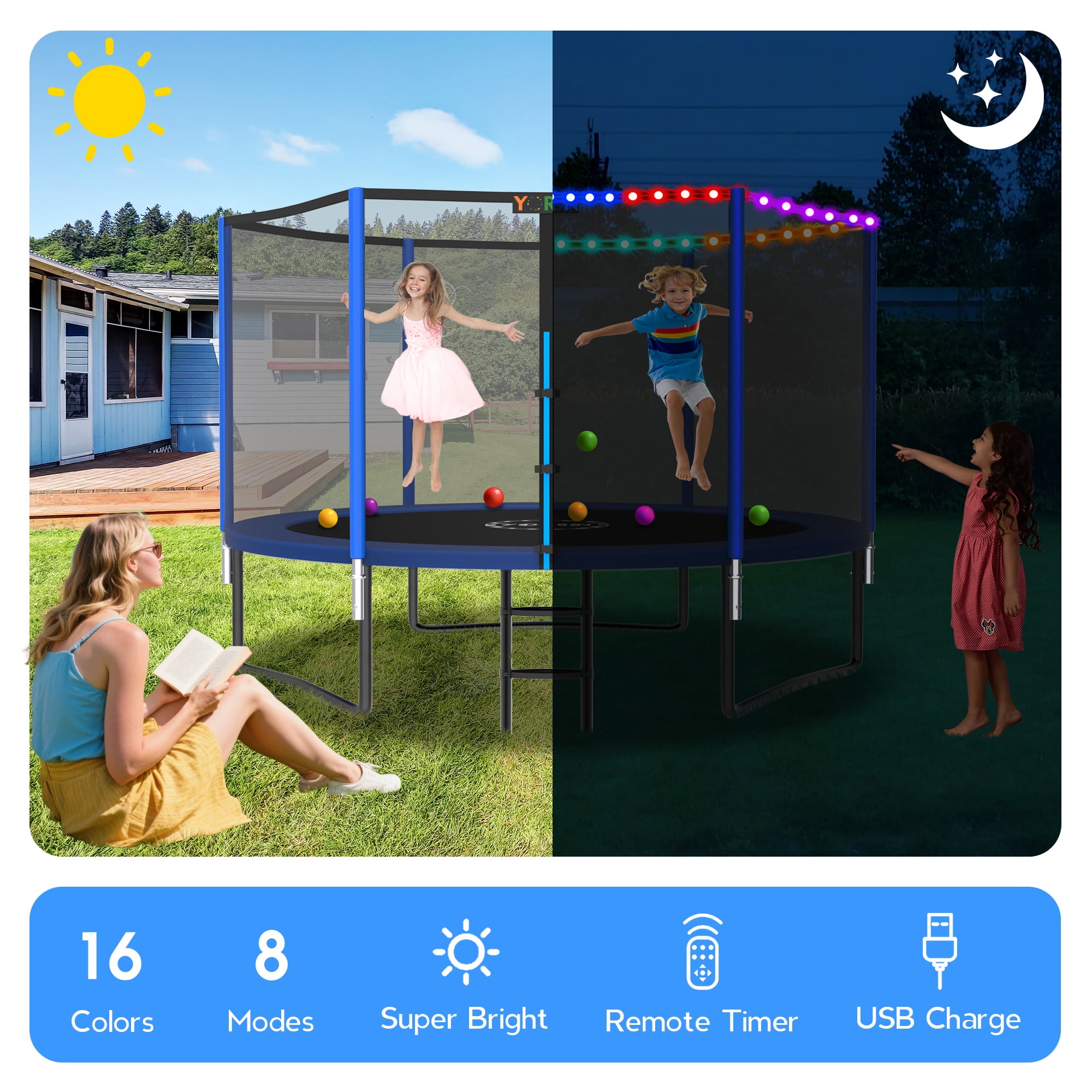 YORIN Trampoline for 2-3 Kids, 8FT 10FT 14FT 12FT Trampoline for Adults with Enclosure Net, Ladder, Light, 800LBS Weight Capacity Outdoor Round Recreational Trampoline, Heavy Duty Trampoline