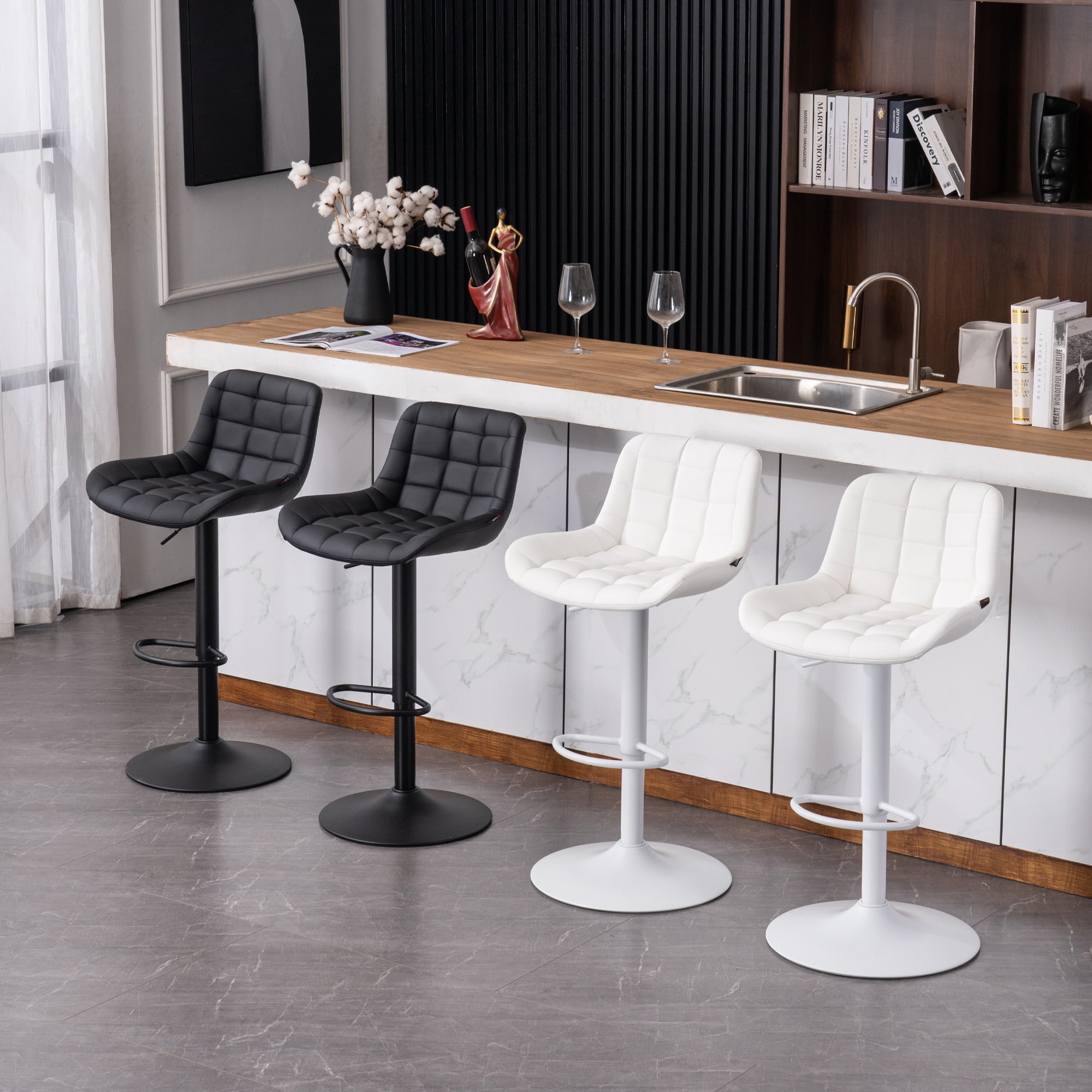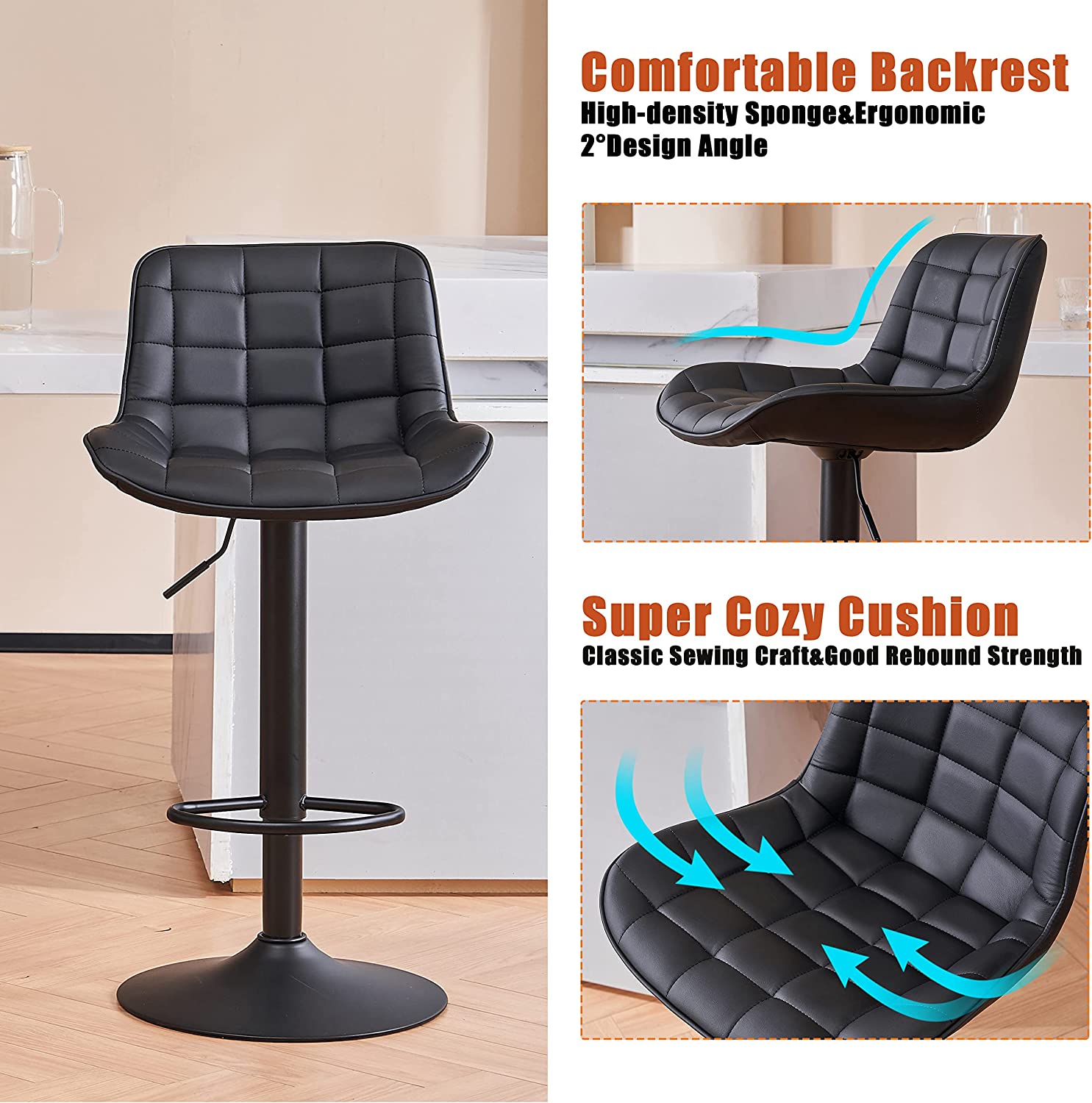 【Solid Metal Frame&Advantaged Technology】Class-3 gas lift, the best choice for stability and safety, adjustable length meets your different needs for the bar chairs height. Large base crafted from tough metal makes barstools supportive and balanced. Soft powder coating has been newly upgraded, making the stools very scratch resistant.