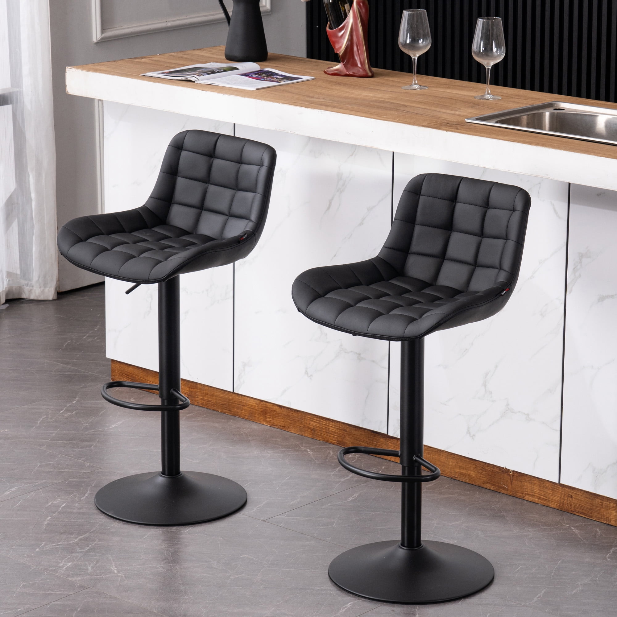 Here are our new and beautiful bar stools that stand out in any dining area. Rubber wood construction for everyday use. The 360-degree swivel seat lets you swing easily. PU surface, filled with high elastic sponge, very soft.. A flared chassis and premium aerobars provide comfort and stability. The transitional design will undoubtedly blend seamlessly with any style of kitchen, basement, game room or bar. It can be assembled in 10 minutes. 2 in 1 set at an affordable price. Don’t hesitate to add them to your cart!