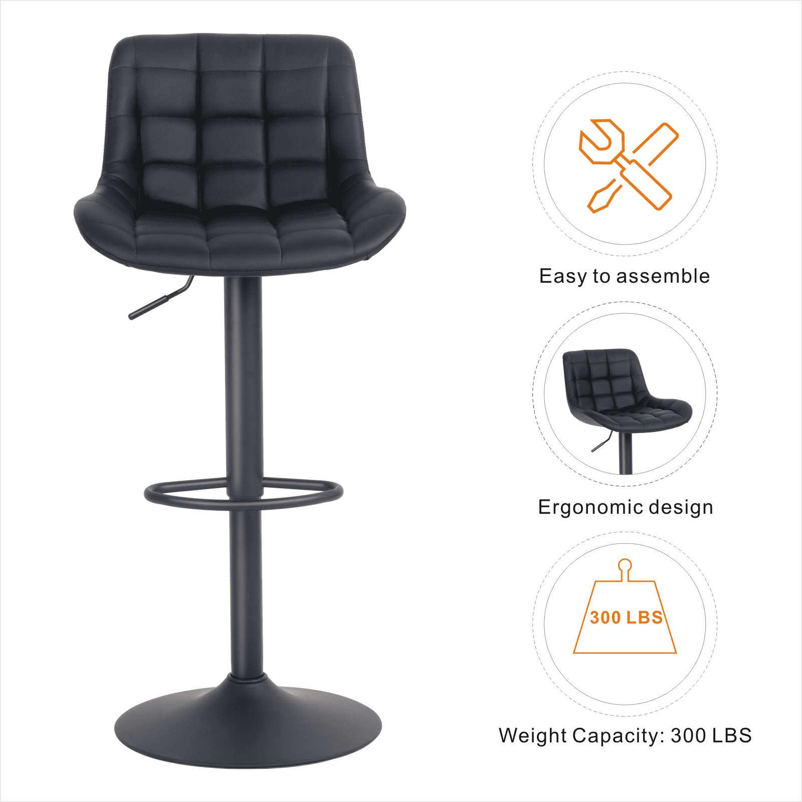 【4 Screws-Minimal Assembly Required】Only 7-10 minutes and 4 screws to enjoy a good time with the bar height stools. Please REMOVE the plastic gas cap BEFORE assembly.