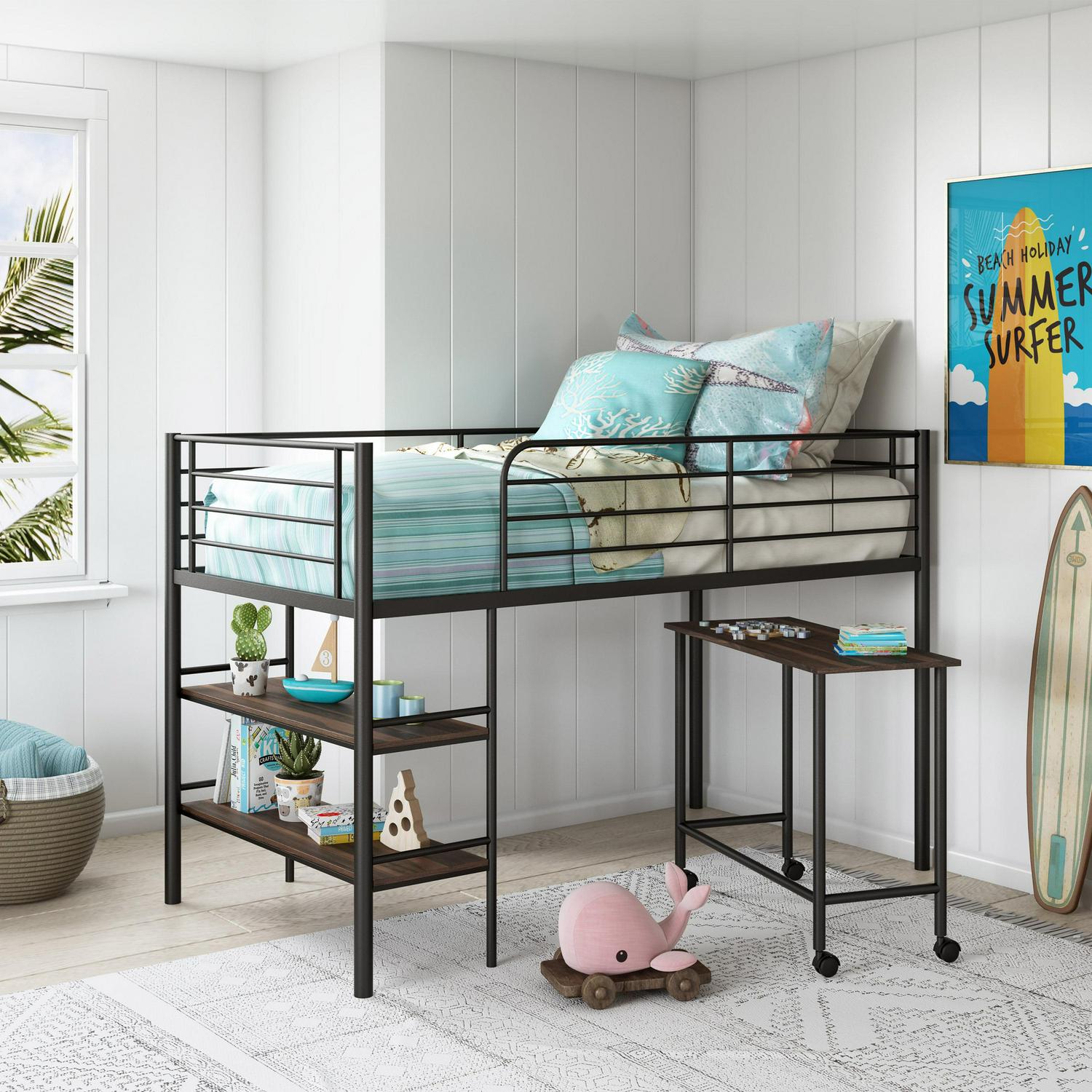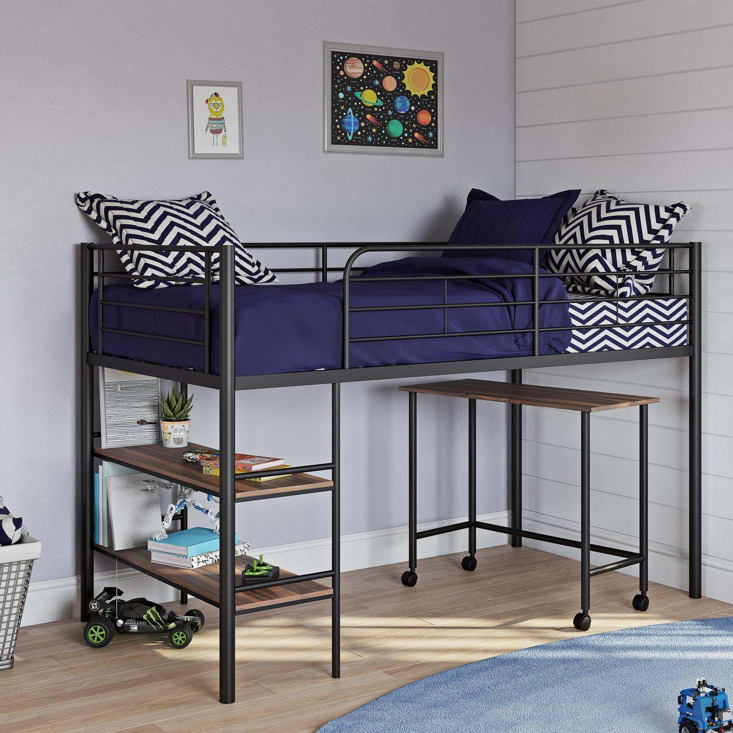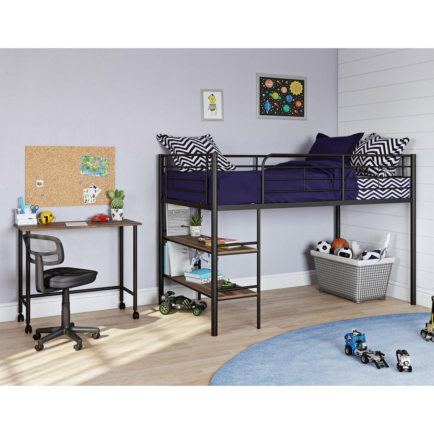 Your Zone Beckett Metal Loft Bed Storage, Twin, Black: