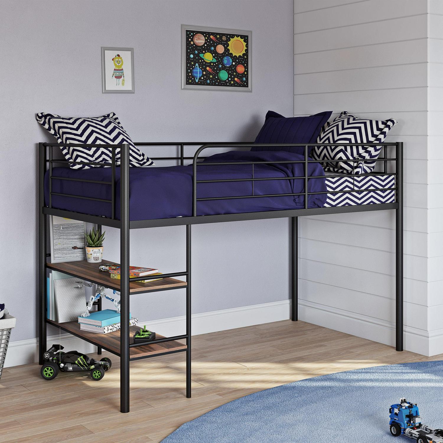 Your Zone Beckett Kids Metal Twin Loft Bed with Open Book Shelf, Multiple Finishes