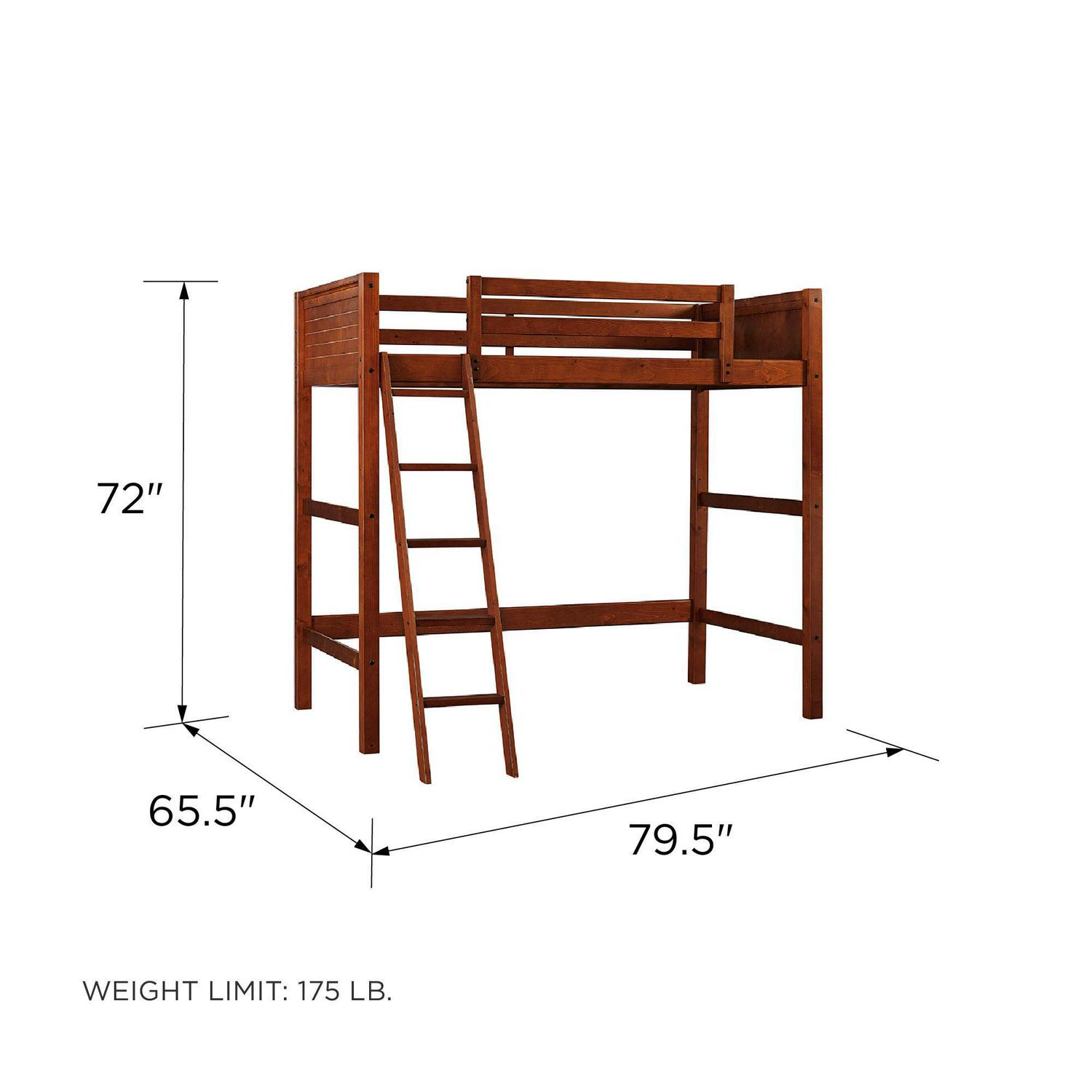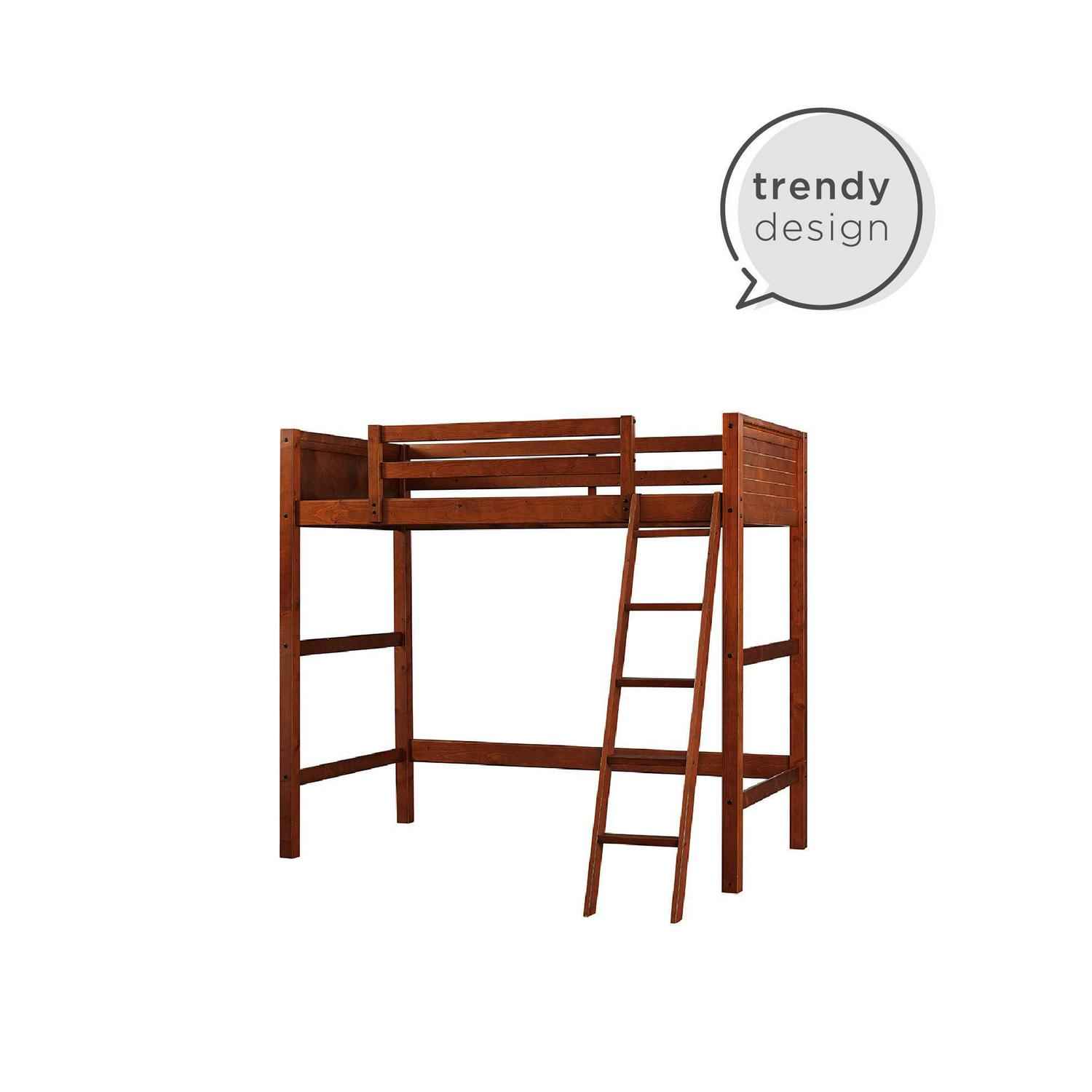 Your Zone Kiarah Twin Loft Bed with Ladder, Walnut