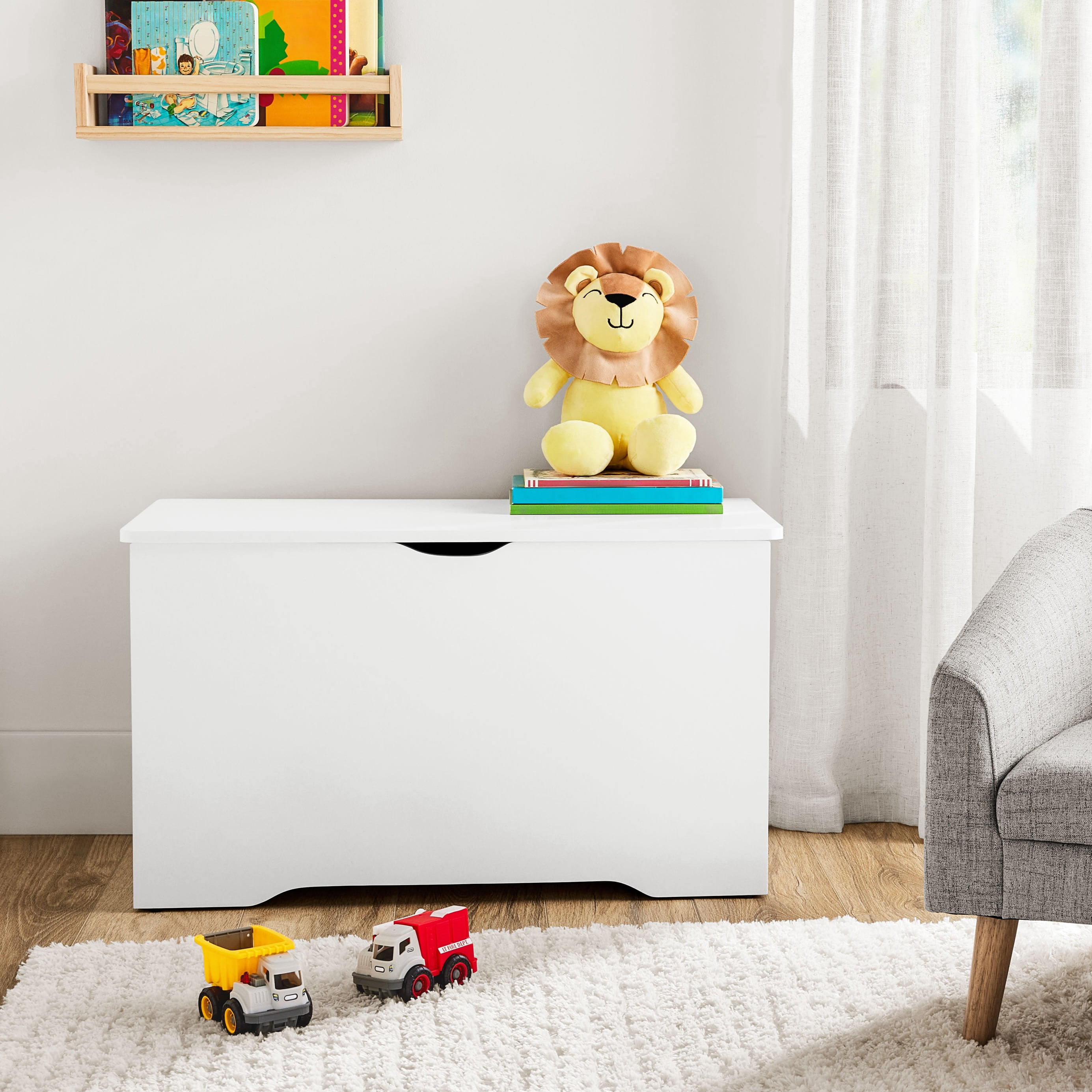 Help your little ones keep toys, games, books, stuffed animals and all their other favorite things picked up with the Your Zone Kids Toy Chest. Designed with children’s safety in mind this toy box features a slow close lid with safety hinge, rounded corners and smooth edges. Cutout handles on each side make it easy to move as needed. With a crisp white finish and streamlined silhouette the Your Kids Toy Chest is a stylish way to add storage and organization to kid’s rooms, playrooms, mudrooms and more.