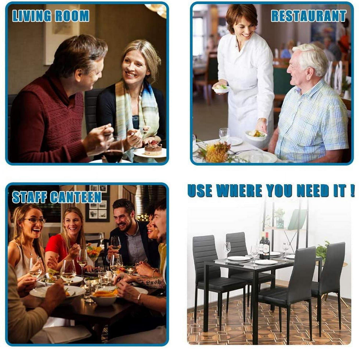 – COMFORTABLE DESIGN: The tempered glass-topped dining table is full of safety and easy to clean PU soft leather chair surface, sitting for a long time not tired.