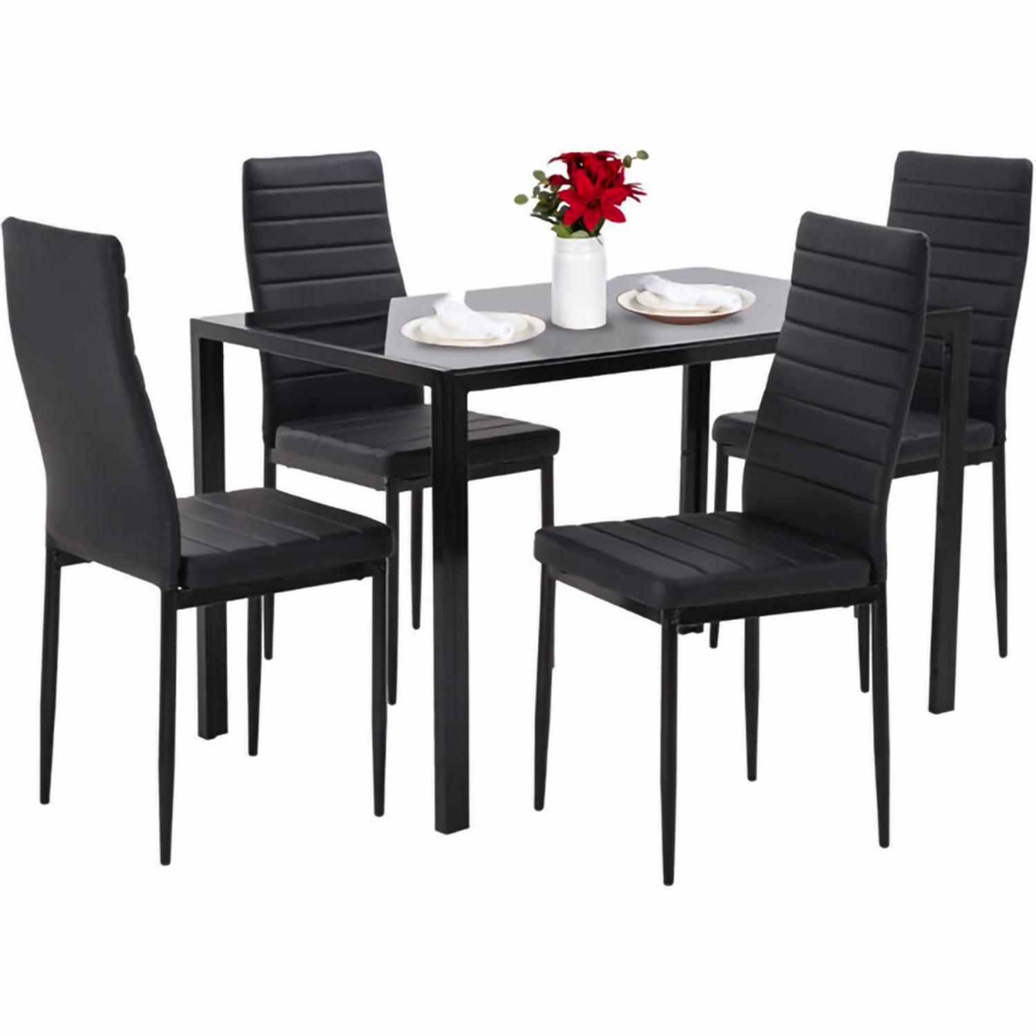 YouYeap 5 Piece Dining Table Set for 4 Glass Dining Table and 4 Chairs Black