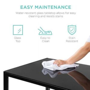 - Table material: Metal frame and glass table