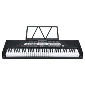 – Standard piano keys keyboard with MP3 player function. Perfect standard 61-key keyboard for beginners. Unique music player function-mp3p (USB disk not included)