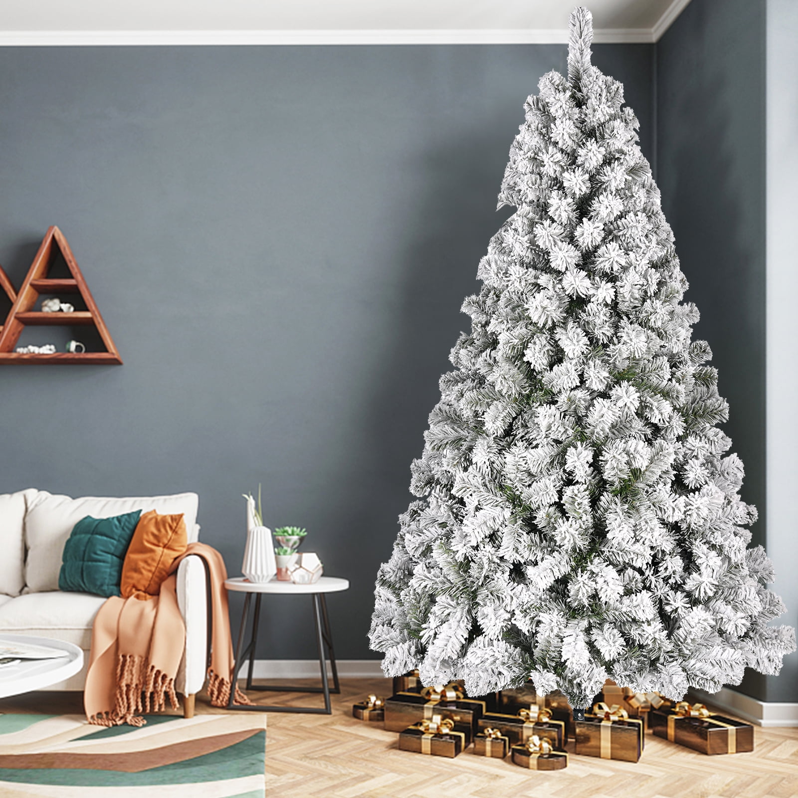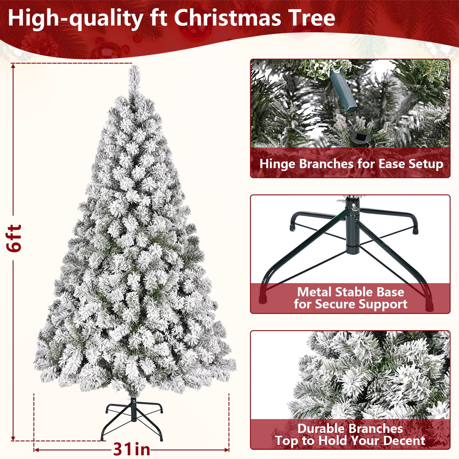 YouYeap Flocked Christmas Tree 6ft Artificial Holiday Christmas Tree with Sturdy Metal Stand