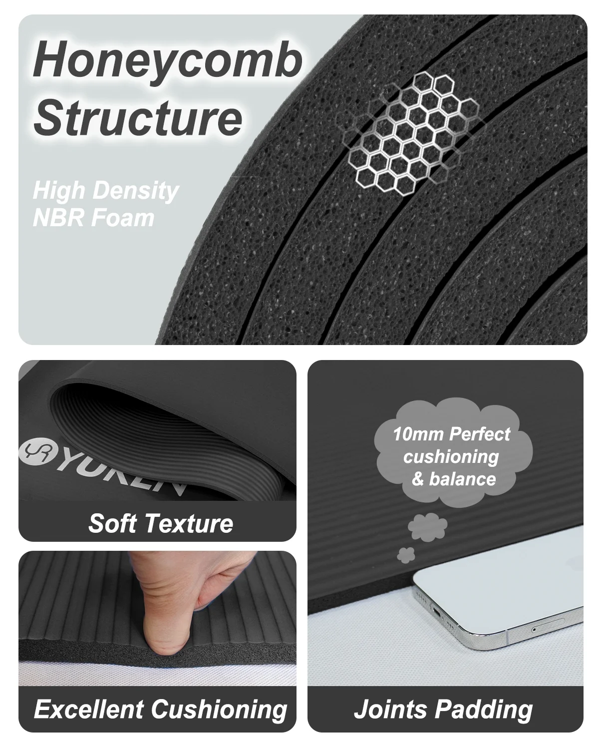 YR Large Yoga Mat for Home Gym Workout 10mm Thick Black 78 x 51 inch