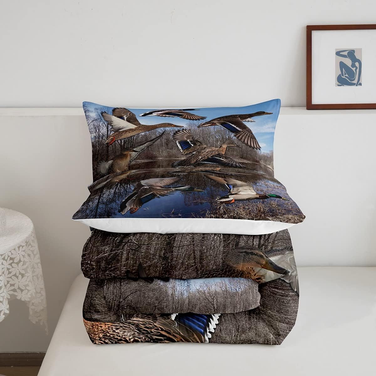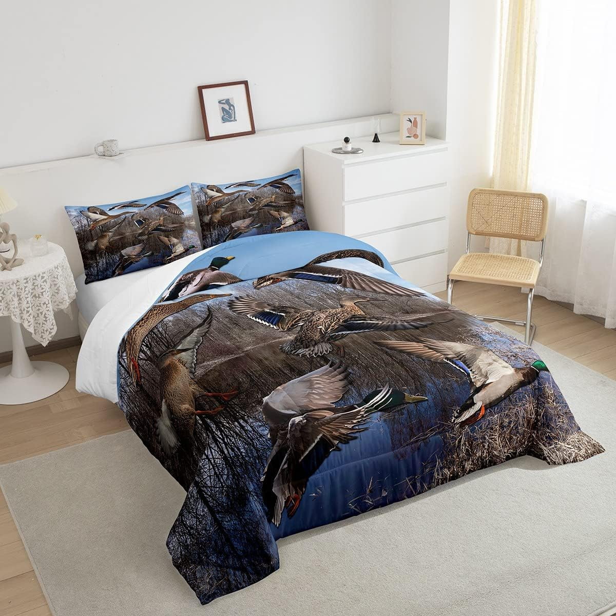 Erosebridal Mallard Duck Duvet Insert Duck Hunting Themed Comforter Set Teens Adults Mallard Duck Bird Printed Bedding Set Rustic Natural Lake Scenery Quilt with 1 Pillowcase,Twin