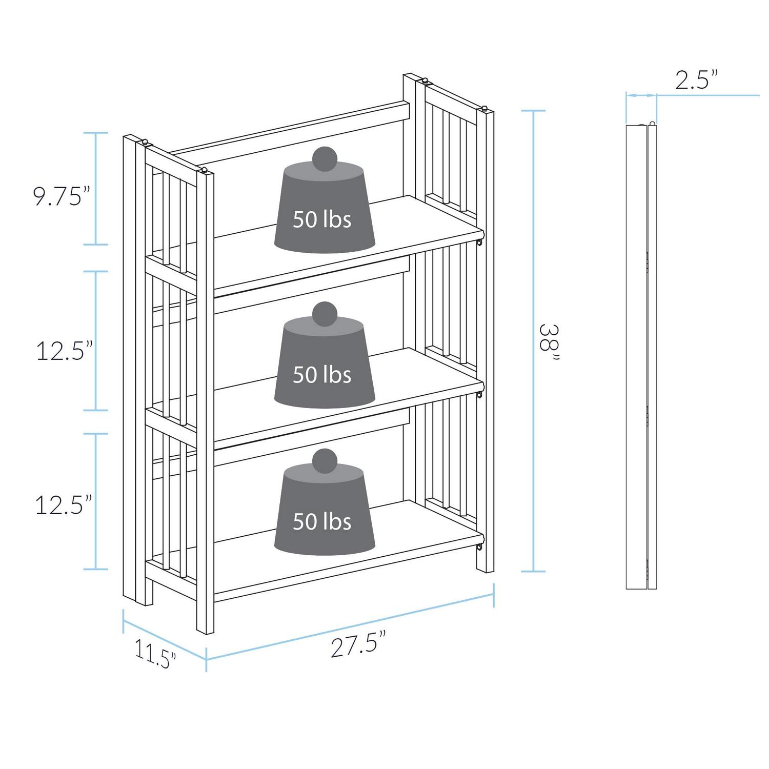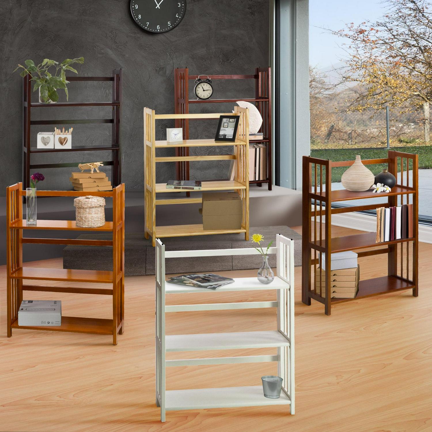 3-Shelf Folding Stackable Bookcase 27.5″ Wide-Espresso